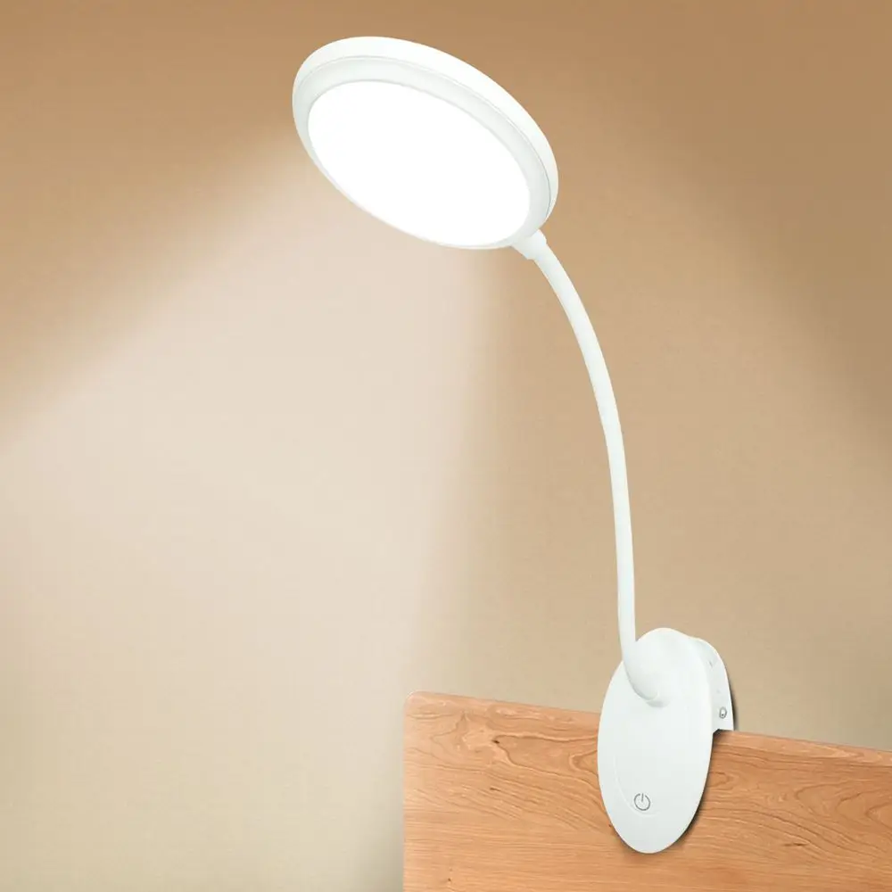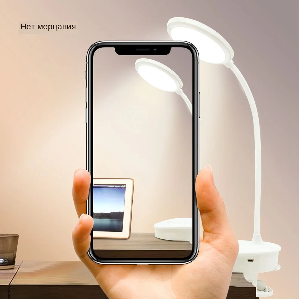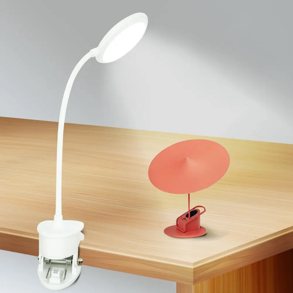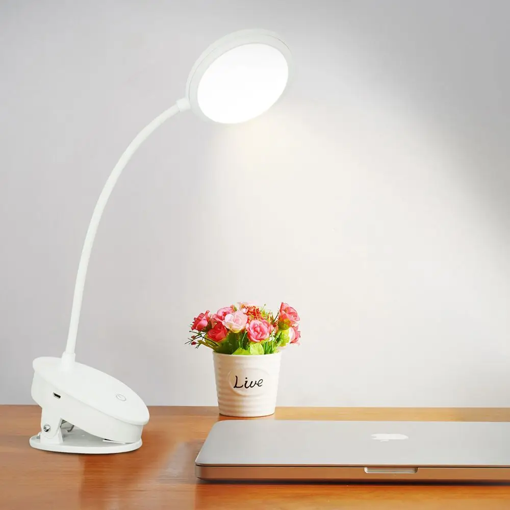 Настольная Светодиодная лампа на зажиме, 3 режима цвета, с затемнением, USB