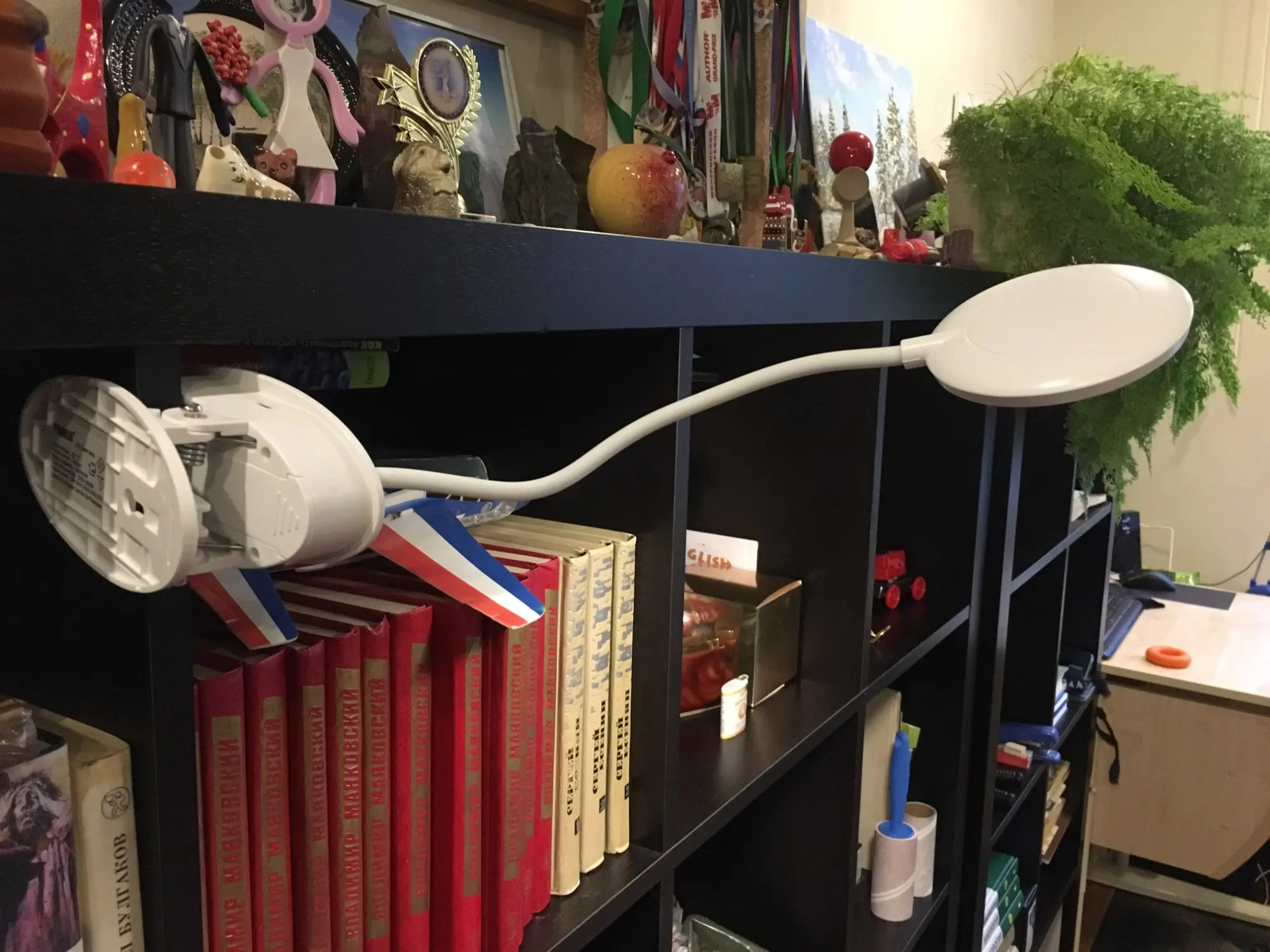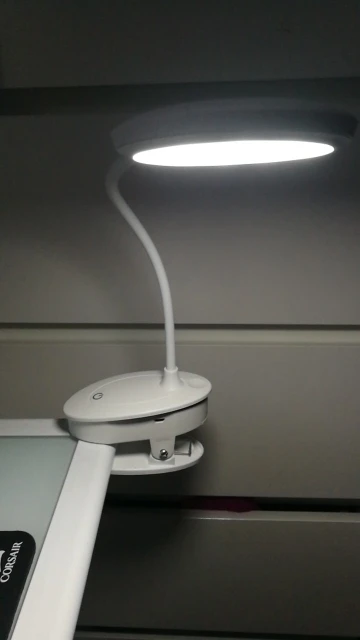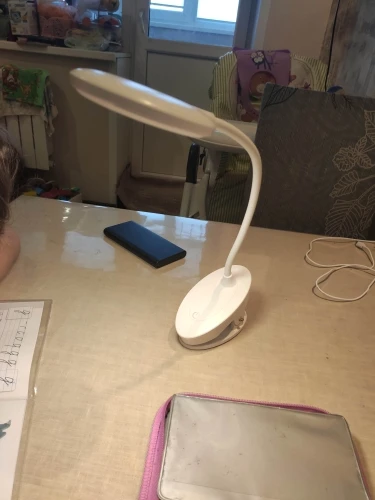 Плюсы: прищепка, автономность (хоть в лес бери, лампа лёгкая), заменяемый недорогой аккумулятор, трехступенчатая регулировка яркости и температуры света. В процессе зарядки (рекомендуется 5В 1А) горит красный светодиод, после зарядки гаснет. Минусы: коротковатая нога (25см), не очень большая максимальная яркость. В одиночку за столом с такой лампой работать комфортно, а вот вдвоем, скажем, с ребенком уроки делать, на весь стол разложив книги и тетради, уже не очень. На широкий стол света не хватит. Доставили в Подмосковье при заказе со склада в России за два дня. Благодарность продавцу и транспортной компании!