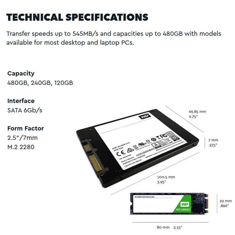 WD Green PC SSD 120 ГБ 240 ГБ 480 ГБ Внутренний твердотельный жесткий диск M.2 2280 SATA 540 МБ/с./с Western Digital для компьютера ноутбука ПК