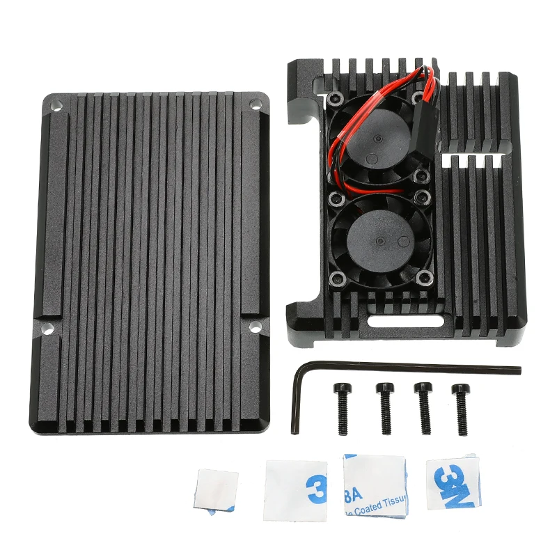 Новый Raspberry Pi 3 Model B + алюминиевый чехол с двойным охлаждающим вентилятором, металлический корпус для Raspberry Pi 3 Model B черного цвета