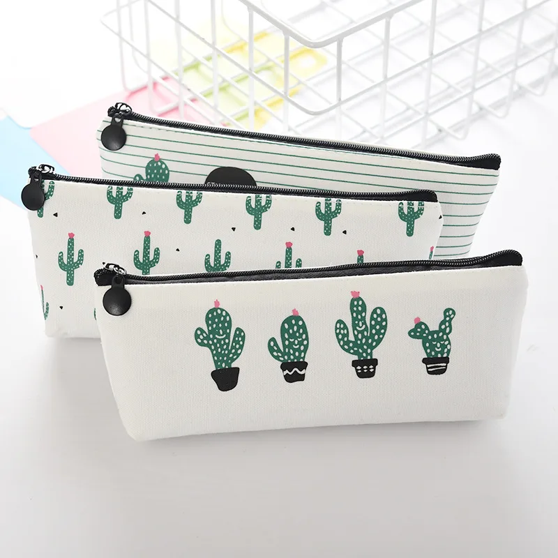 Новинка, холщовый мультяшный чехол для карандаша, свежие зеленые суккуленты, сумка для карандашей, детские аксессуары, подарки, канцелярские принадлежности