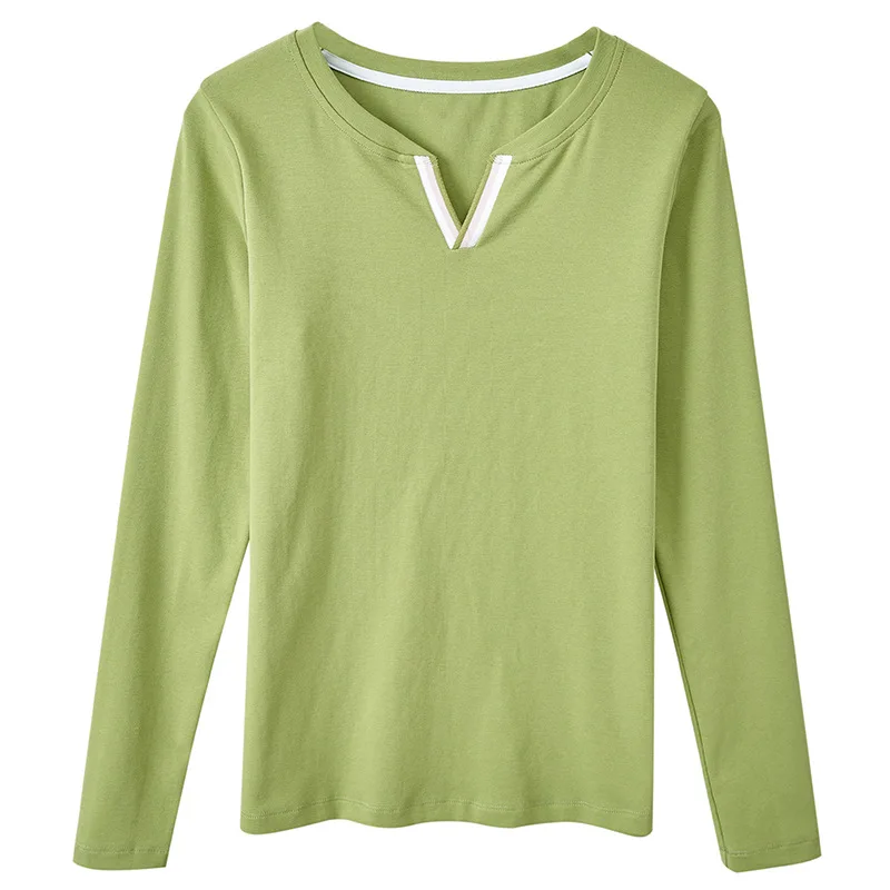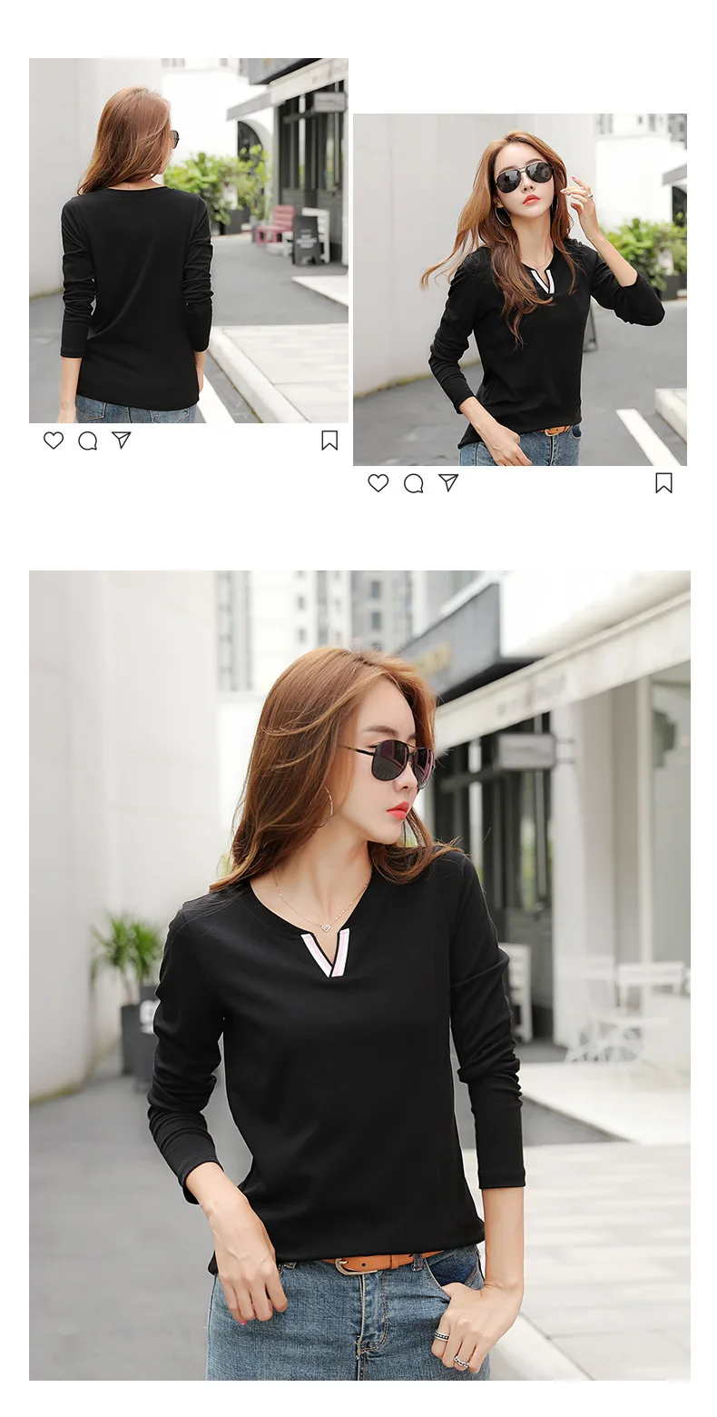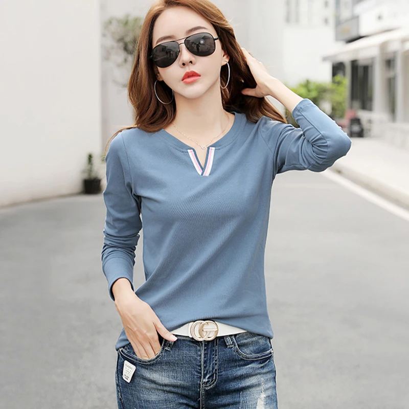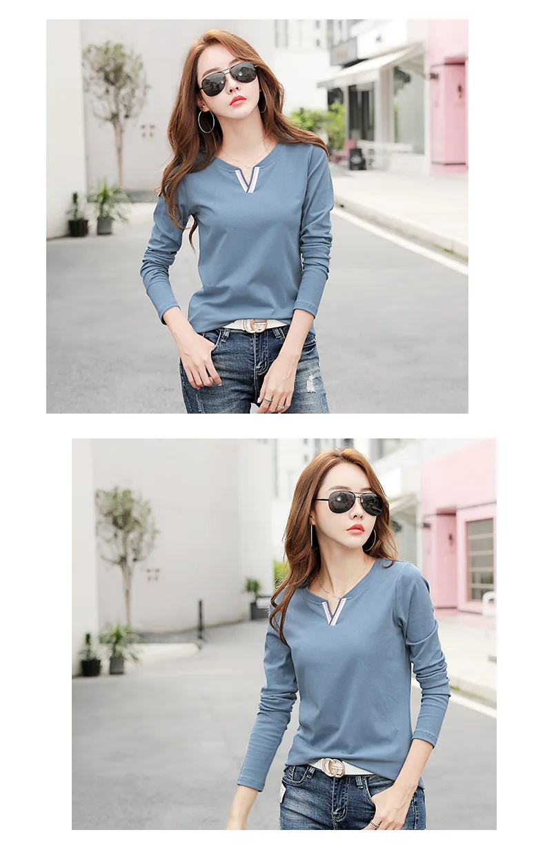 Женская хлопковая Футболка с V-образным вырезом и длинным рукавом
