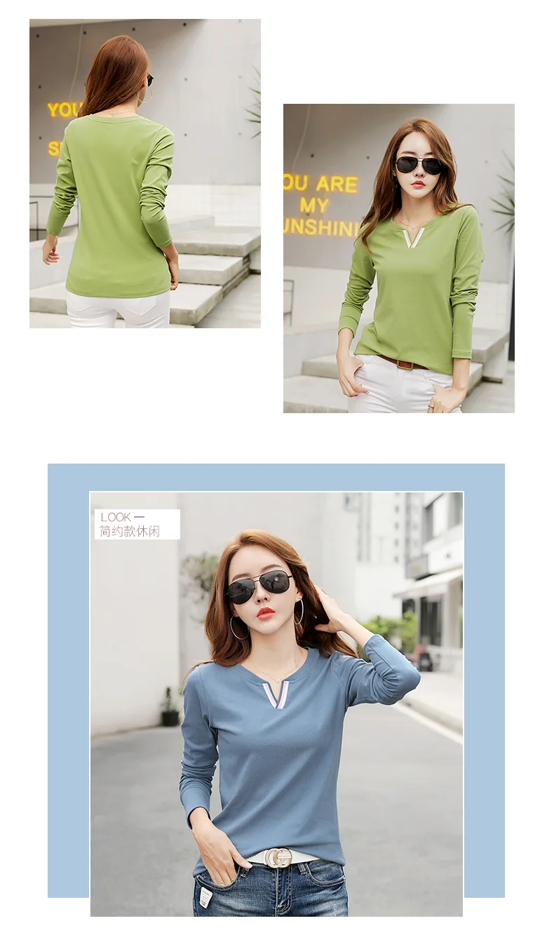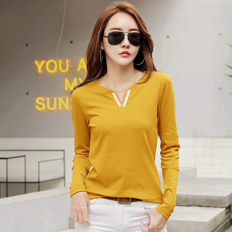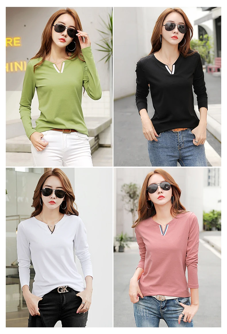 2020 футболка с v-образным вырезом из 100% хлопка, Женская Осенняя ...