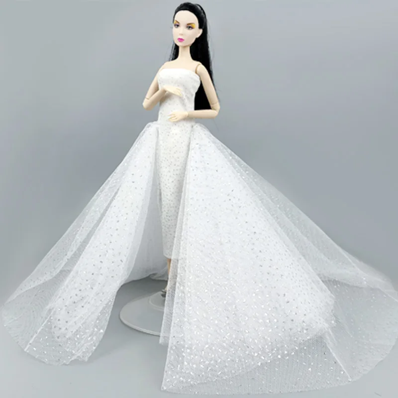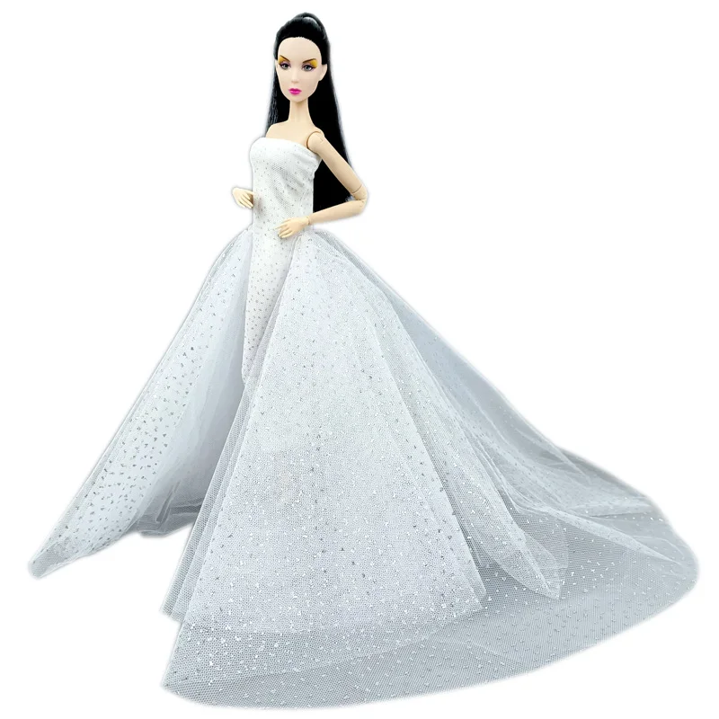 Белое модное свадебное платье для куклы Барби, одежда, большие вечерние платья, вечернее платье, наряды 16, аксессуары для кукол