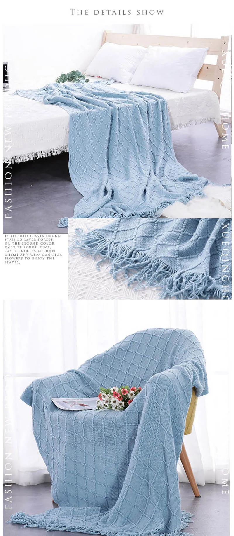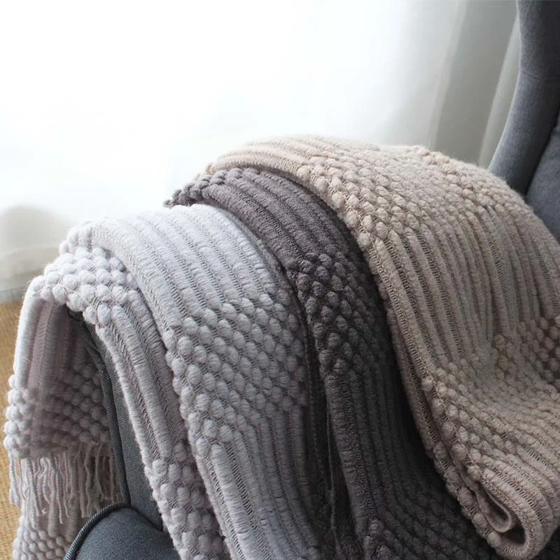 Всесезонное вязаное одеяло для кондиционирования воздуха, одеяло для сна в скандинавском стиле, однотонное серое одеяло цвета хаки, кровать, диван