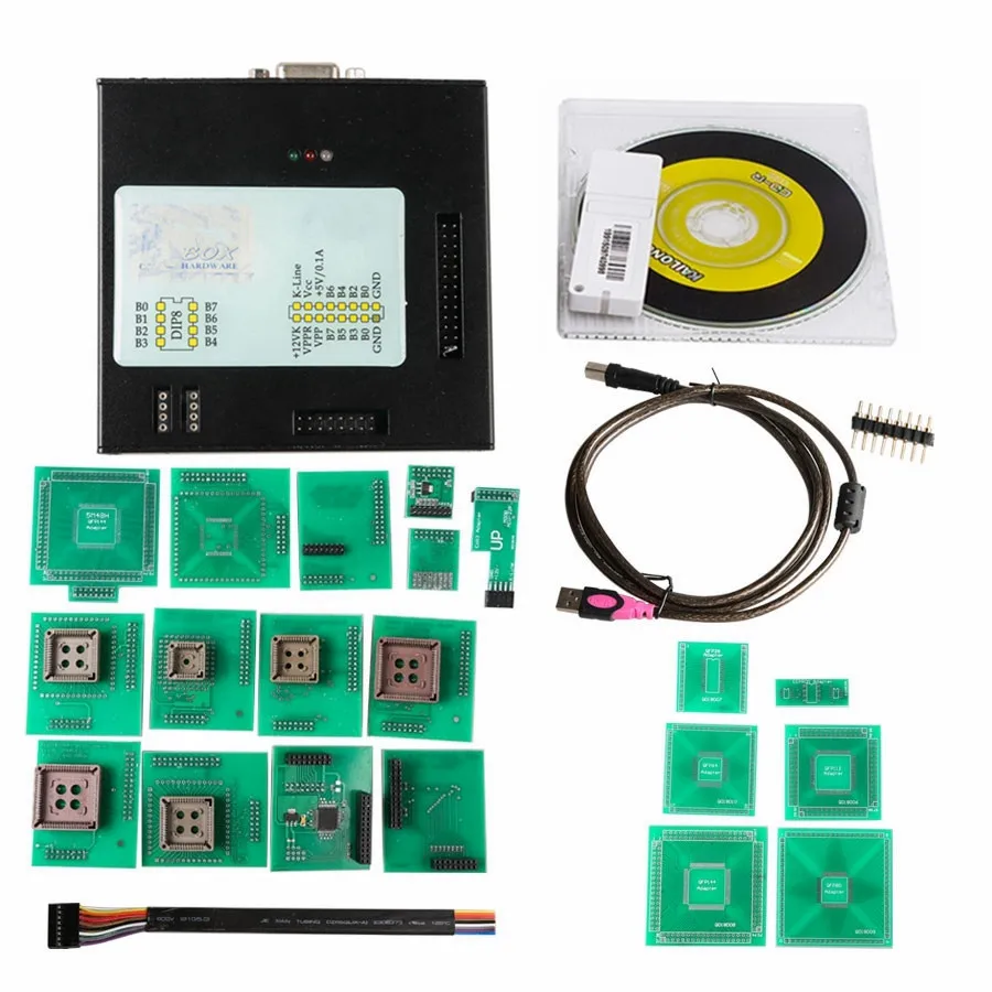 1 шт. x XPROG-Box Hardware (алюминиевый корпус)Набор адаптеров 19 шт.1 шт. х USB кабель1 шт. x 16Pin кабель1 шт. x CD с программным обеспечением XPROG-Box (V6.12)