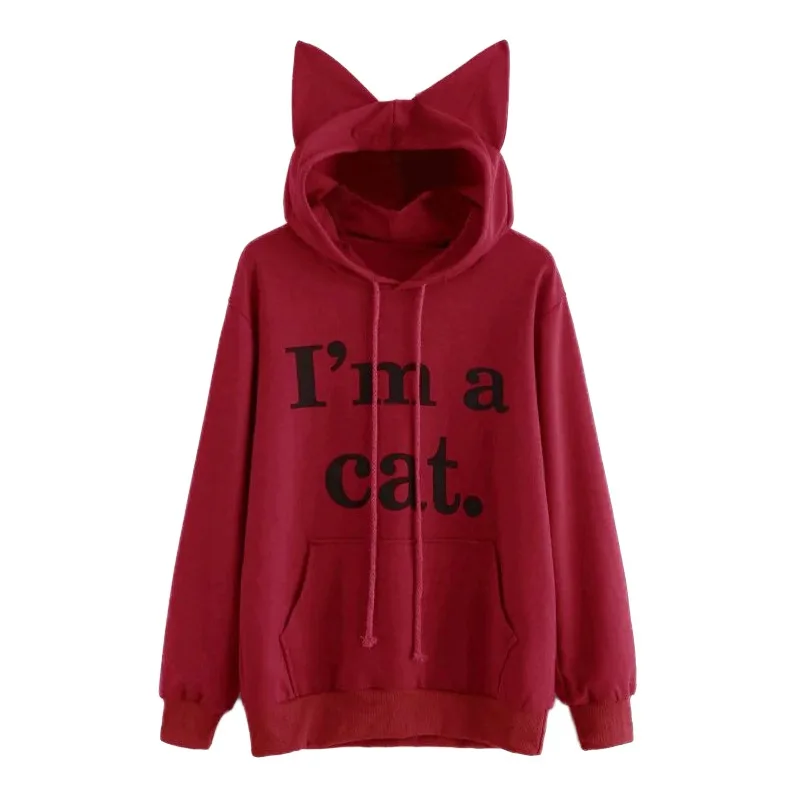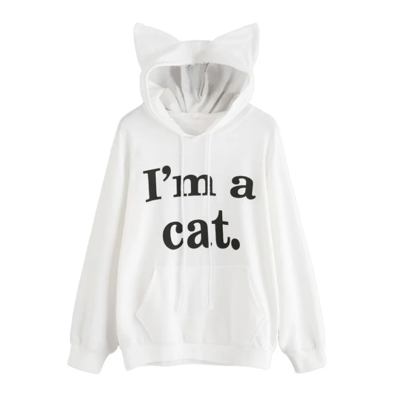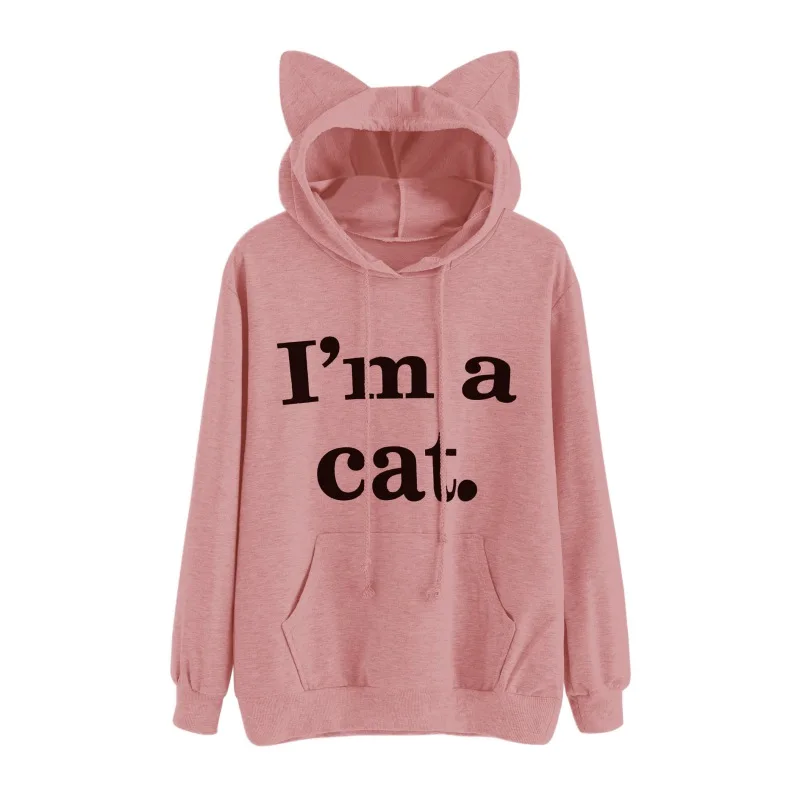 Худи с кошачьими ушами и буквенным принтом I'm a cat, повседневный милый пуловер с капюшоном и длинным рукавом, осенняя Женская толстовка для девочек, большой размер 3XL