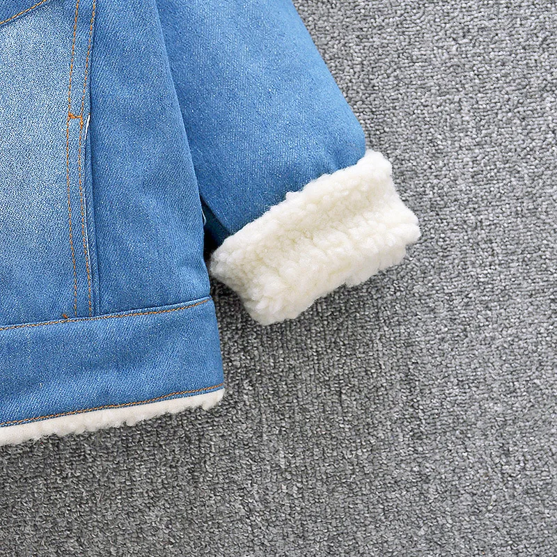 Осенне-зимняя джинсовая куртка для маленьких девочек теплая Вельвет...