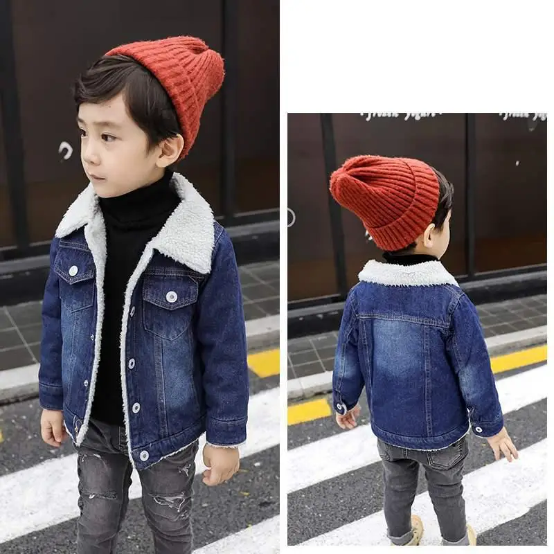 Джинсовые куртки для девочек и мальчиков, пальто одежда для малышей осенне-зимнее утепленное пальто для малышей Детская верхняя одежда, джинсовая куртка для малышей