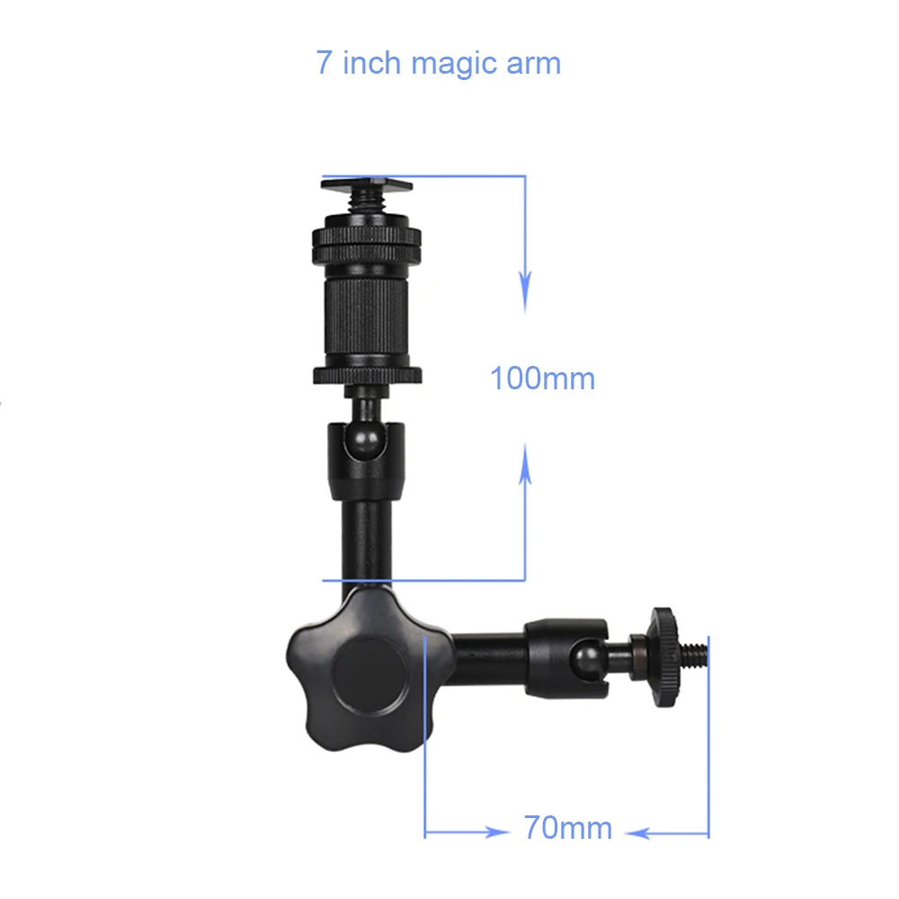 Это профессиональный Шарнирный Рычаг 7 "/11", идеально подходящий для Светодиодный светильник, ЖК-монитор или светильник вспышки и т. д. на камерах. Эта точная и долговечная Волшебная рукоятка с фиксационными ручками для снятия или увеличения натяжения, которое может обеспечить движение всех позиций. Эта Артикуляционная Волшебная рукоятка упрощает монтаж, размещение и регулировку любых осветительных приборов для камеры и других аксессуаров.