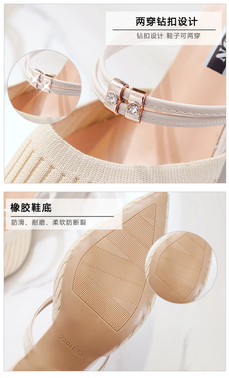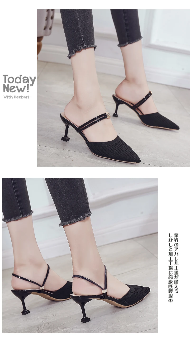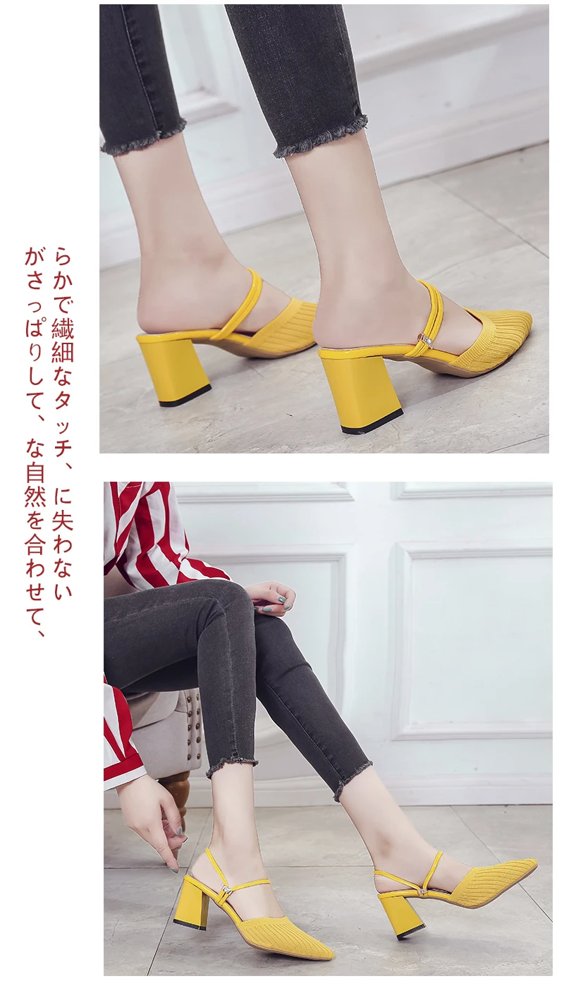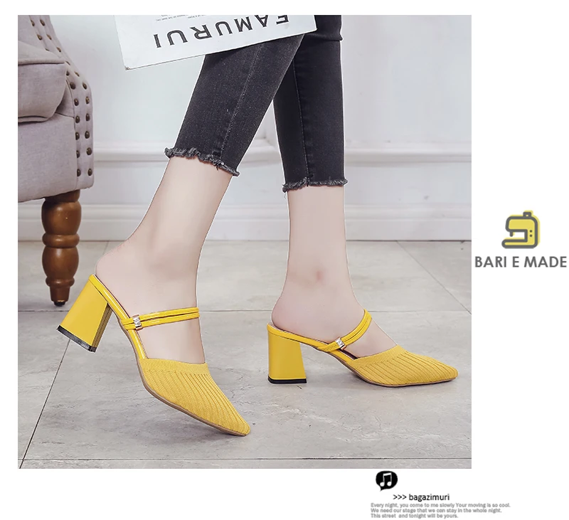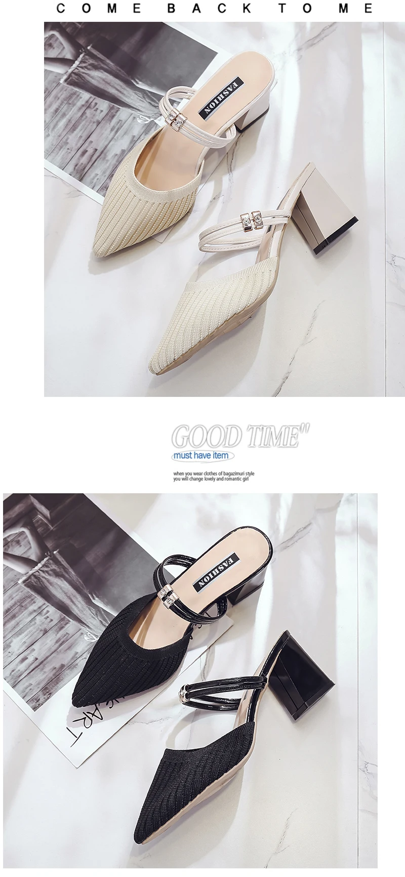 Туфли женские на высоком каблуке, эластичные сетчатые, вязаные, без застежки, квадратный каблук, стразы, весна-осень 2019