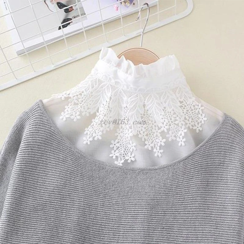 Женская блузка с оборками, воротник-стойка, вязаный крючком цветочный кружевной орнамент, однотонная Съемная Дамская эластичная половинная рубашка
