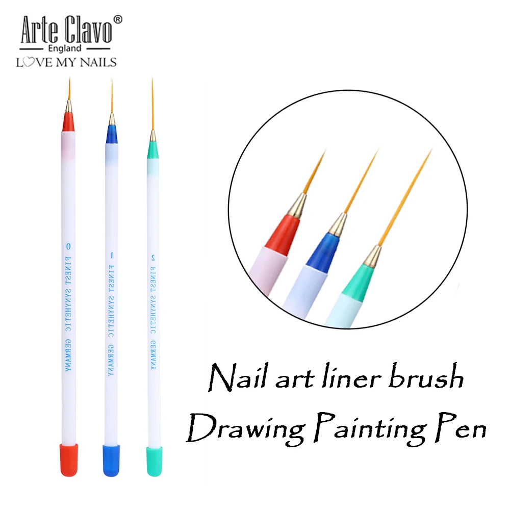 Arte Clavo для дизайна ногтей кисть для рисования полоса цветок 3D УФ-гель для ногтей акриловое перо Советы Дизайн DIY Инструменты для маникюра 3 шт.компл.
