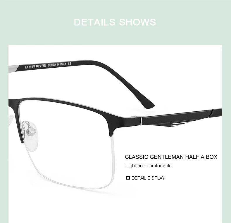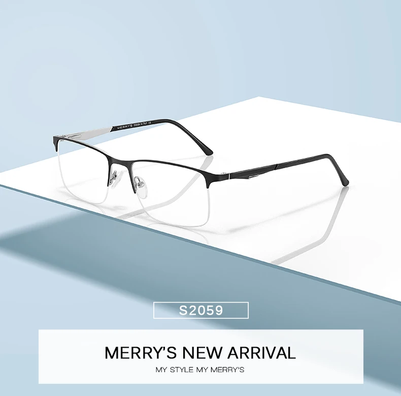 MERRYS Дизайнерские мужские очки из титанового сплава , Мужские квадратные полуоптические ультралегкие очки для близорукости, очки по рецепту S2059