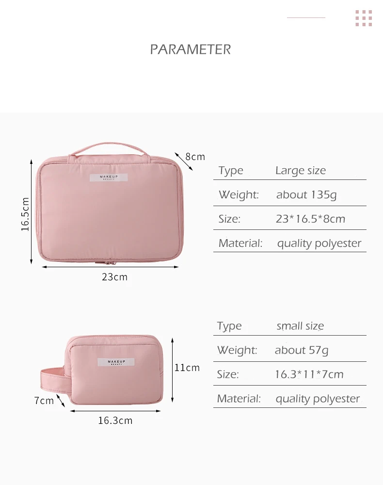 Размер: Большой 23*16,5*8 см, маленький 16,3*11*7 см Цвет: розовый, синий Материал: полиэстер Характеристики: портативный с высокой емкостью