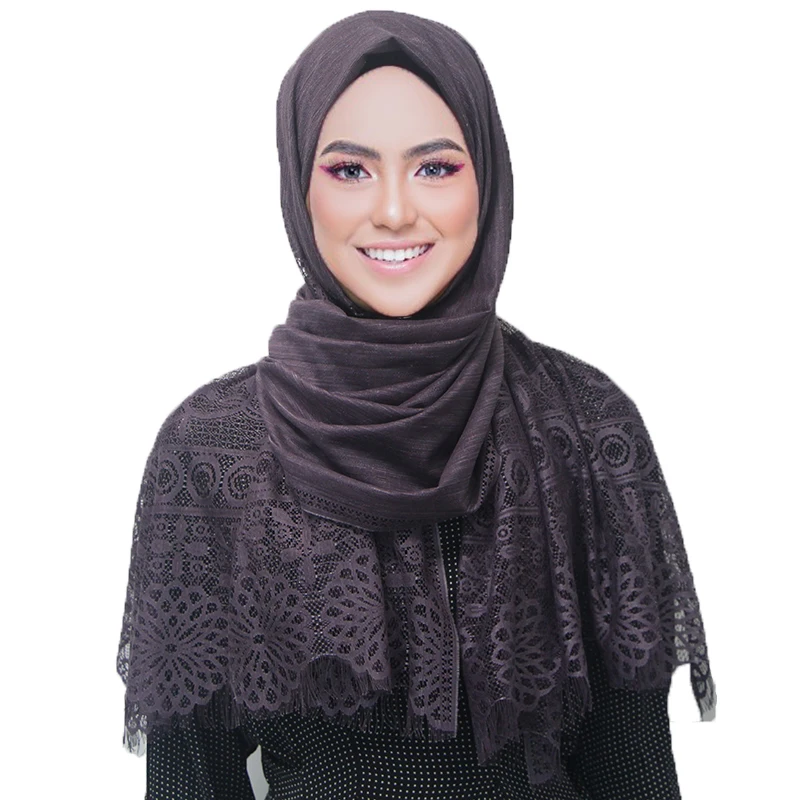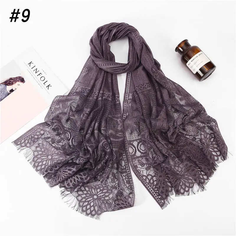 Женский цветочный кружевной шарф, мусульманский хиджаб из полиэстера, шали, повязка на голову, Модные осенние шарфышарф 11 цветов 180*70 см