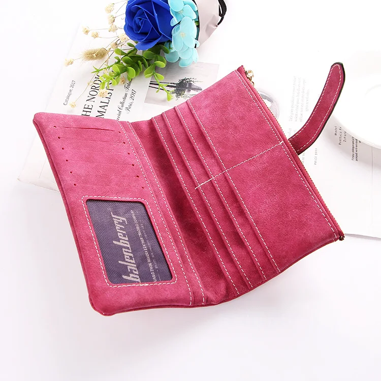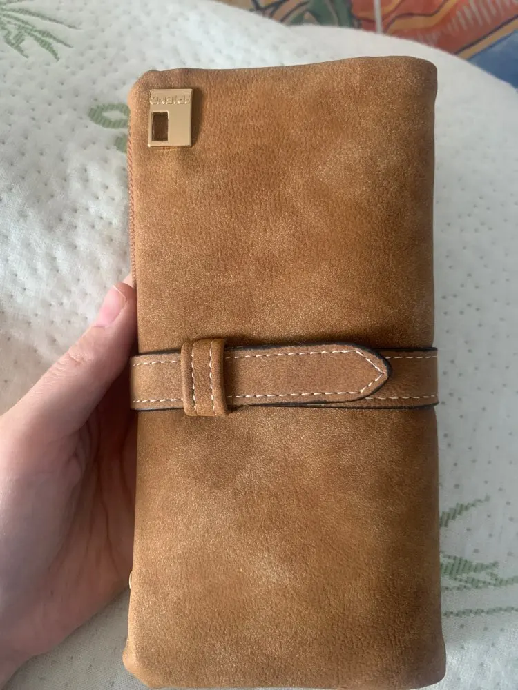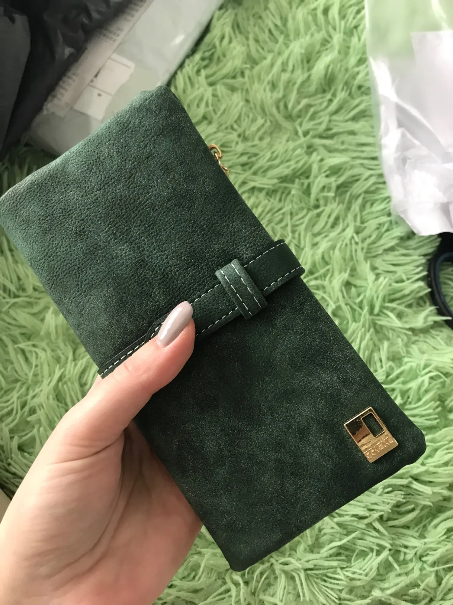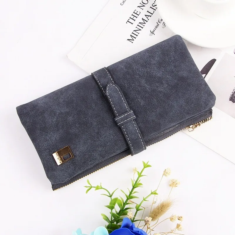 Женский Длинный кошелек, складной, из нубука, на молнии