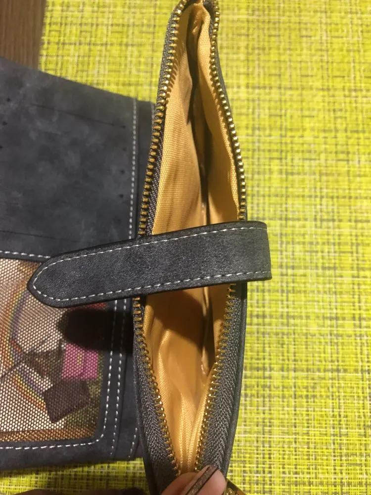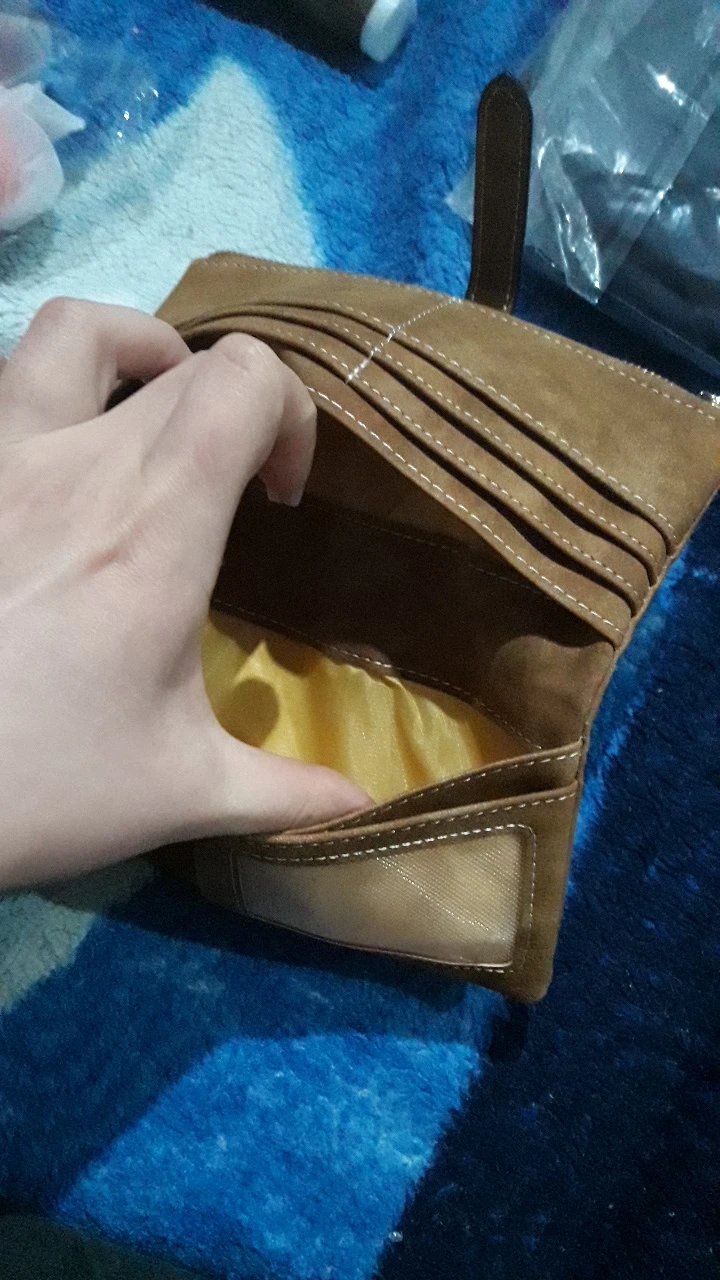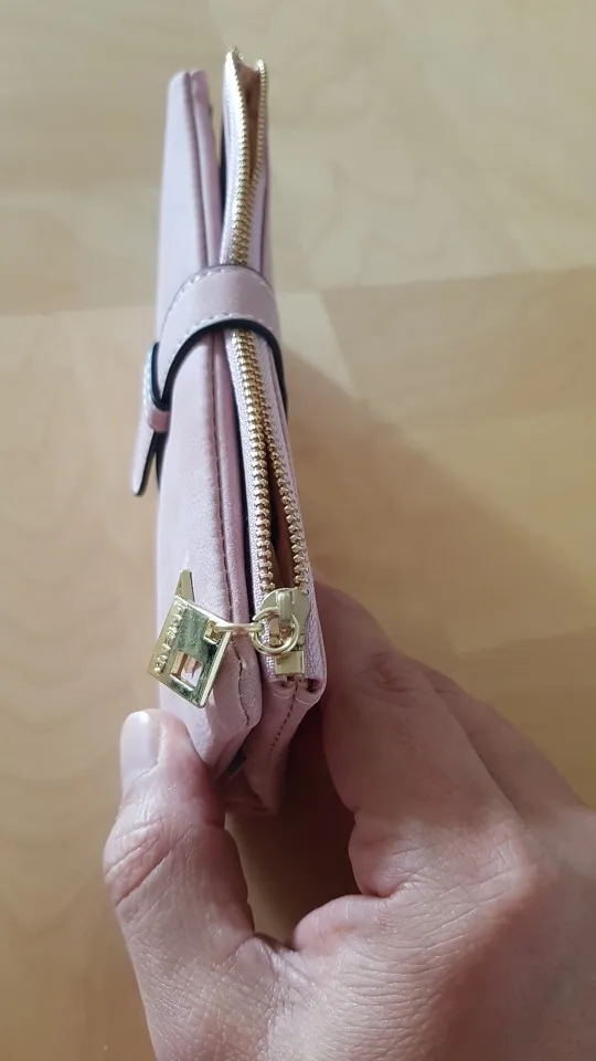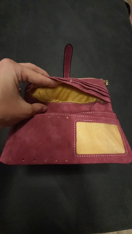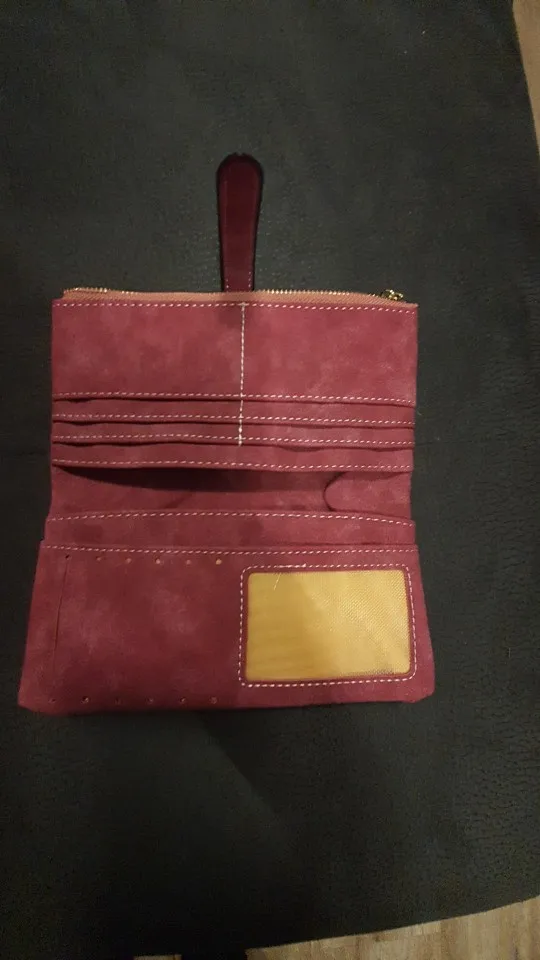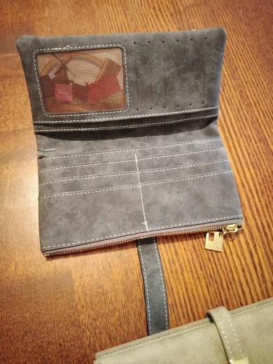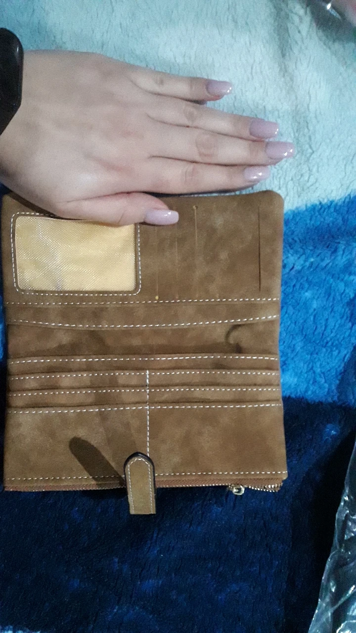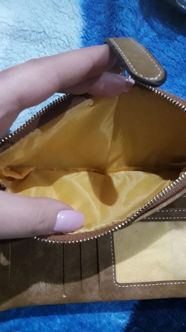 Кошелёк хороший, до этого был практически такой же ( тот что сверху на фото). Этот даже приятнее на ощупь и выглядит лучше. Единственный минус- это ткань внутри карманов (жёлтая). В первом кошельке подкладка была из ткани, а в этом не знаю что за материал, но ужасно шуршит, это дешевит конечно) но в целом я довольна. Доставка быстрая.