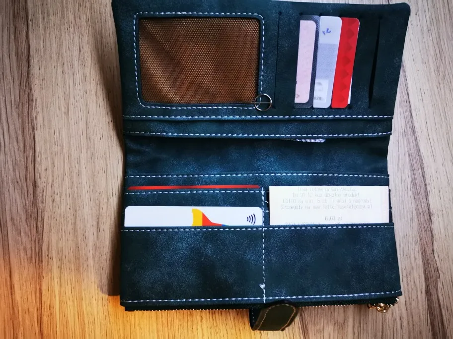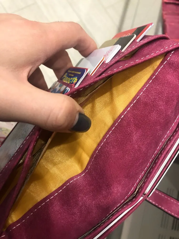 Симпатичный кошелёк, но в плане удобства оказался не очень, если положить что то помимо денег, например визитку, или карту, то при открытии вылетает
