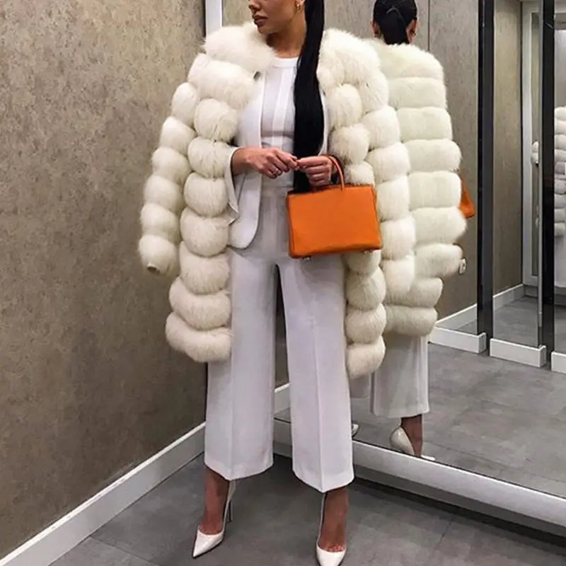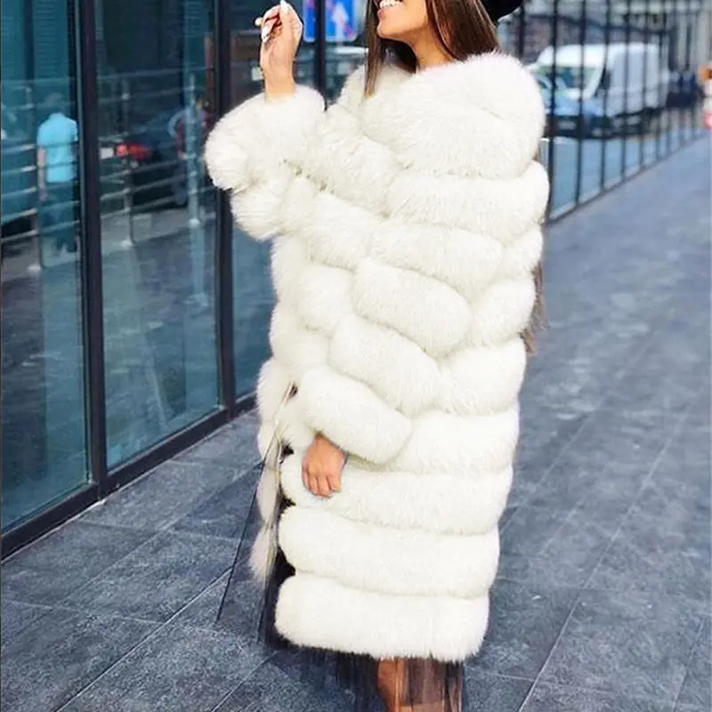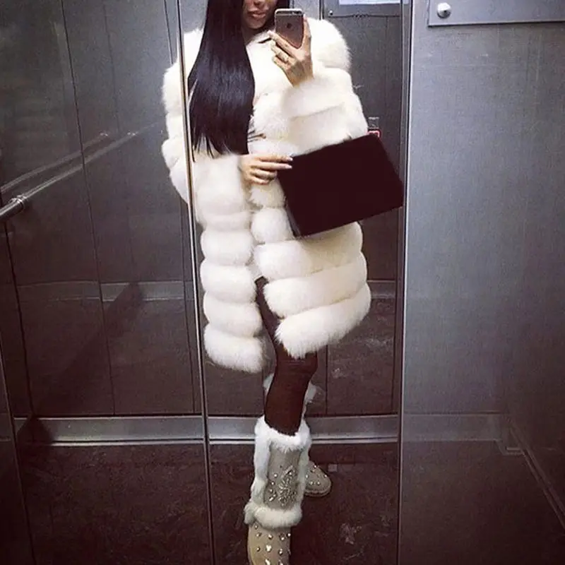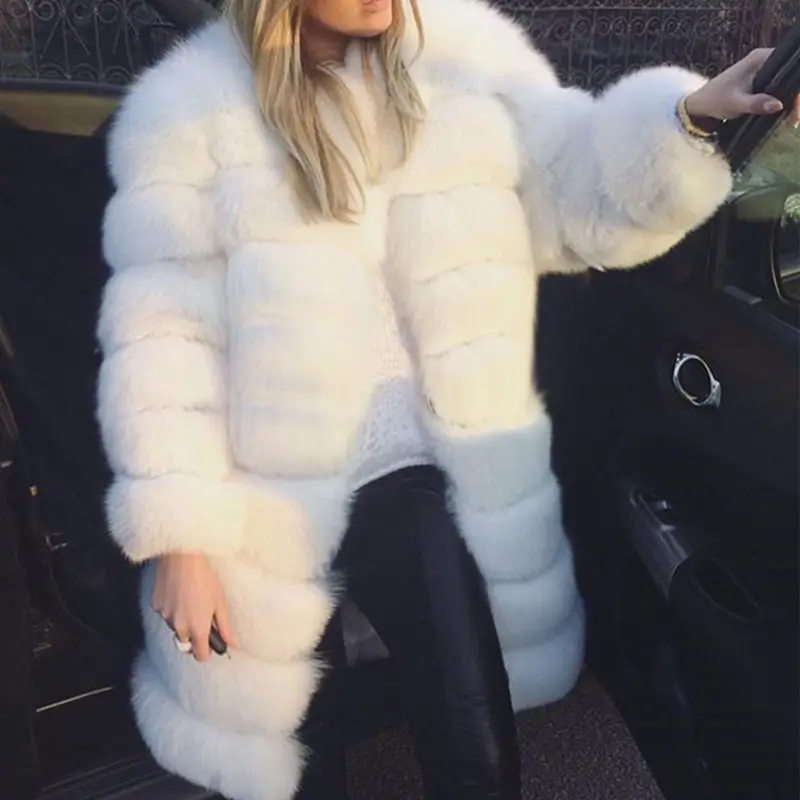 Женская зимняя шуба из искусственного меха, с длинным рукавом