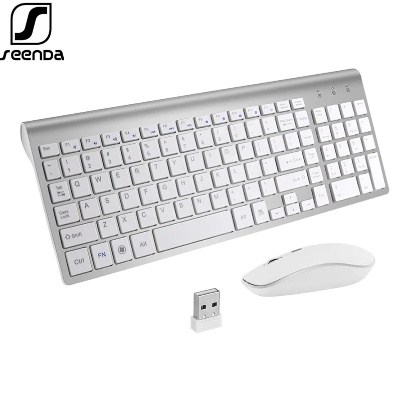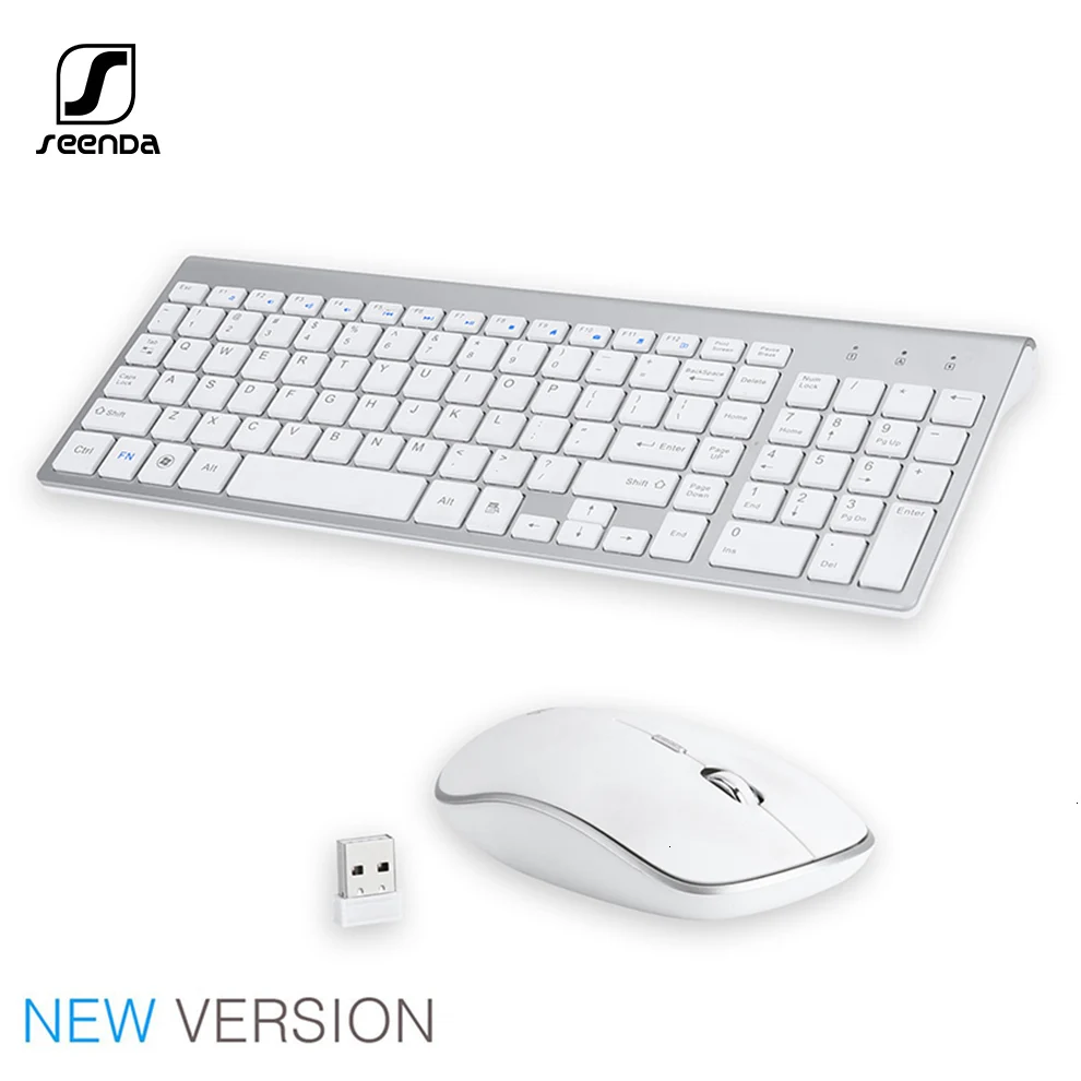 Беспроводная клавиатура и мышь SeenDa 2,4 ГГц, комбинированная Мультимедийная мини-клавиатура, полноразмерная мышь для компьютера, ноутбука, настольного компьютера