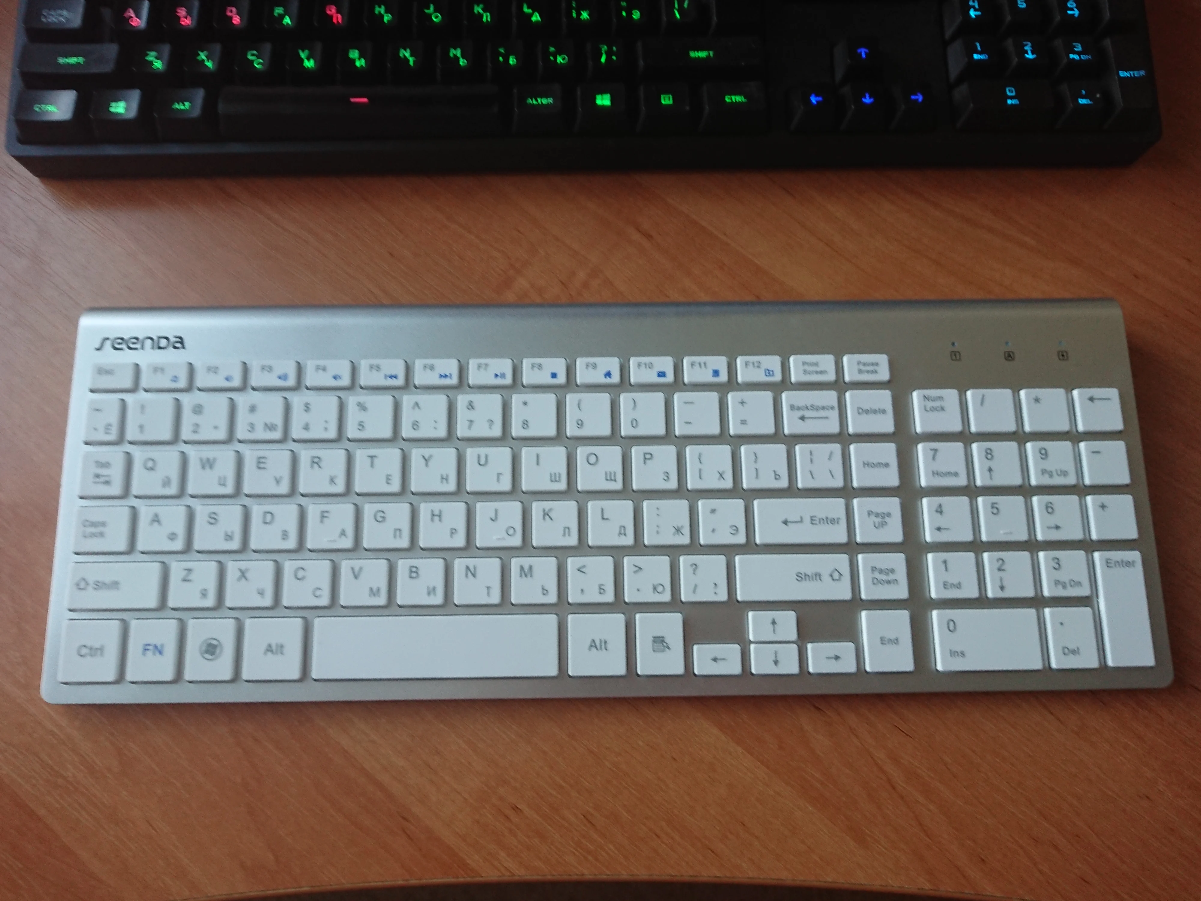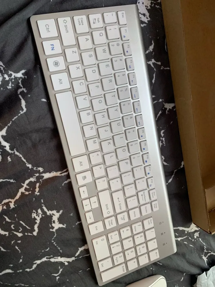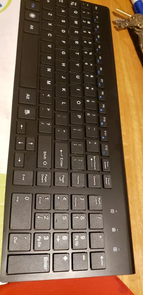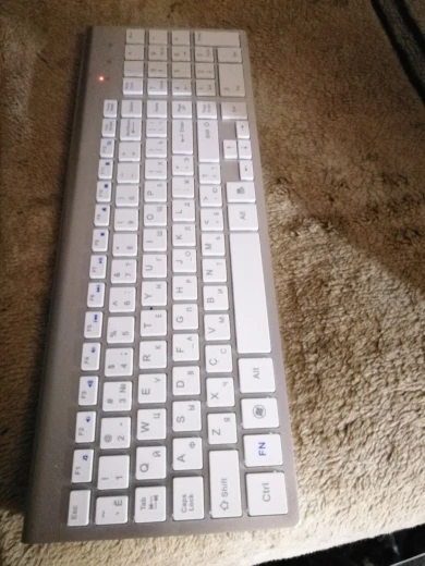 Хорошая тонкая клавиатура уменьшенного размера. Мне требовалась клавиатура которая бы помещалась в рюкзак для ноута на 13 дюймов и это то что нужно. Так как клавиатура уменьшенная нужно чуть привыкать к размерам клавиш и смещению пальцев, но этого я ожидал.