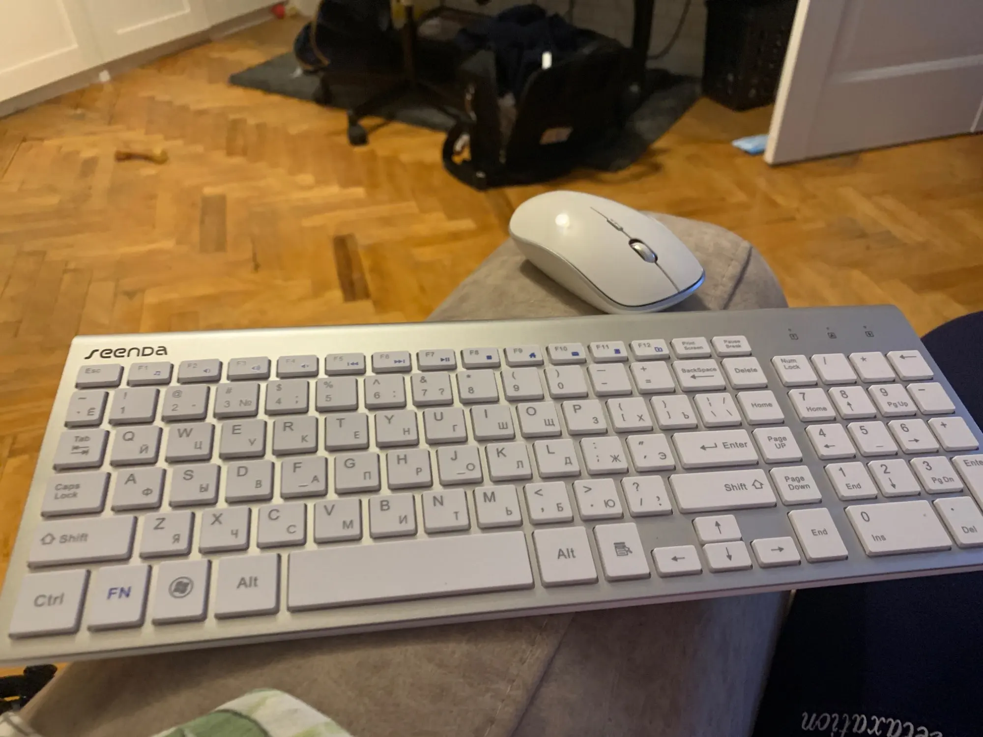 Клавиатура приятная на ощупь. Кнопки мягкие. Приятные. Мышка беззвучная. Класс. Законнектилось сразу. Полёт нормальный. Продавца рекомендую. Комплект тоже.