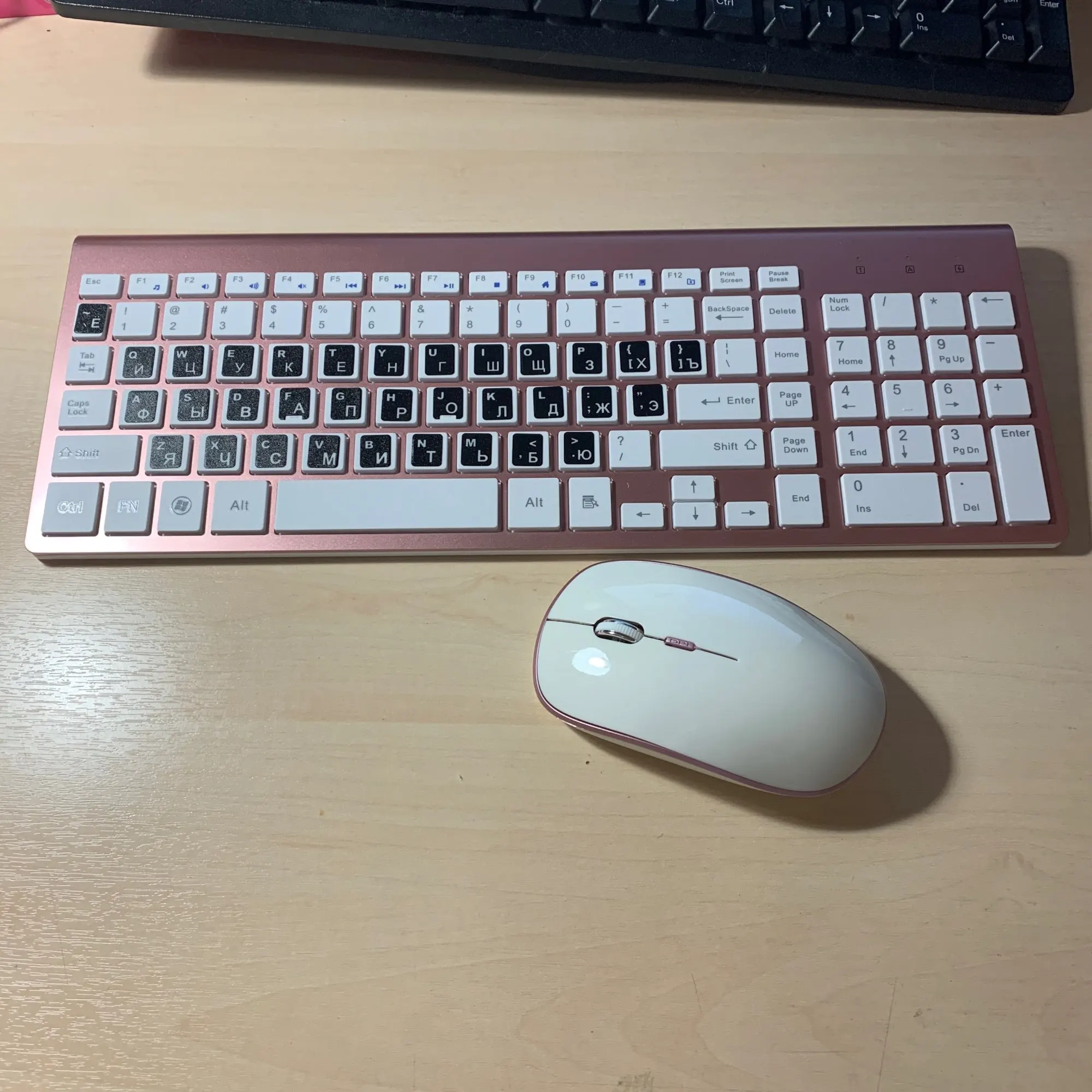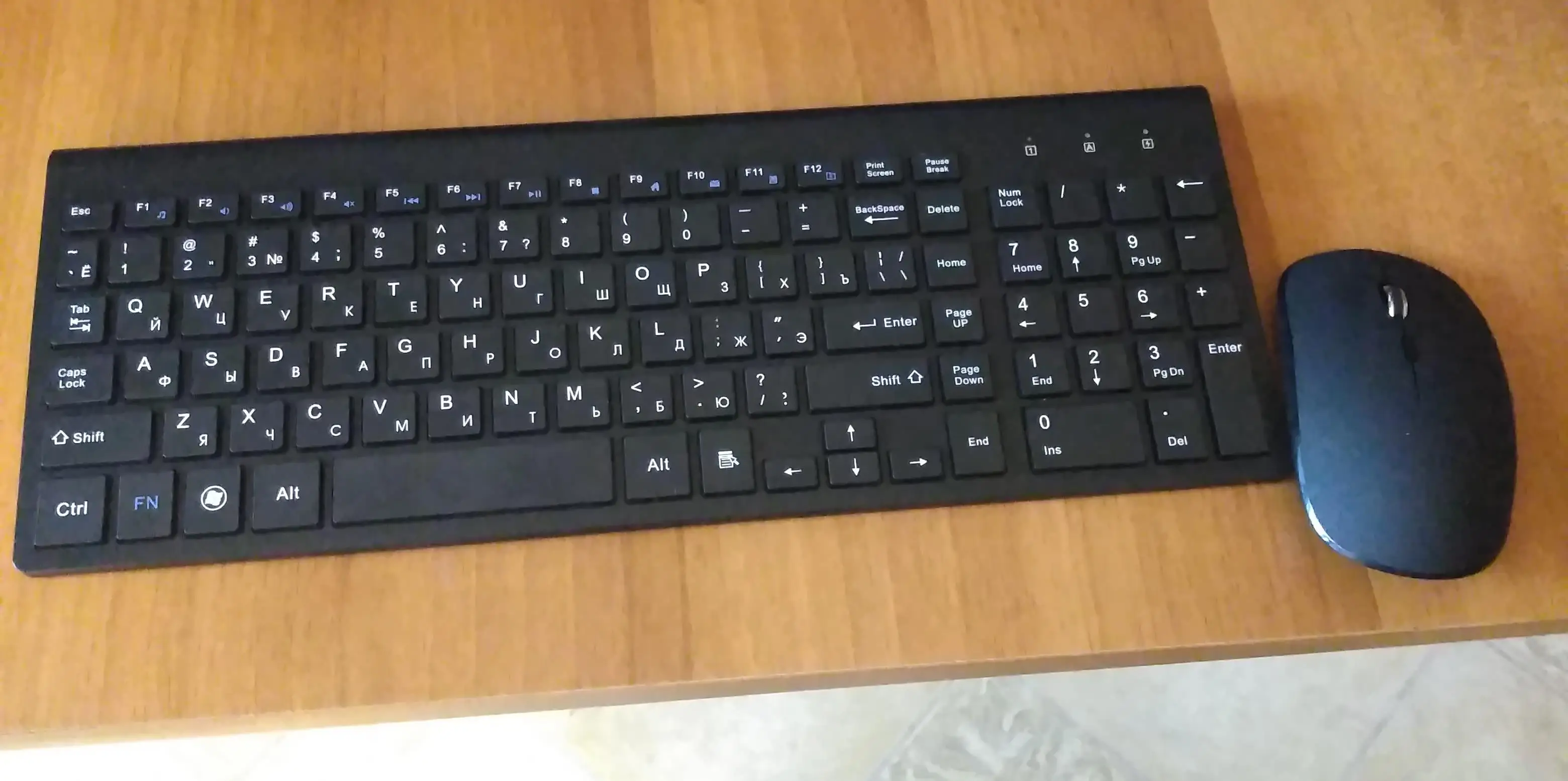 Мышка и клавиатура очень классные! Русская клавиатура, никакие наклейки не нужны. К сожалению отказало колесико у мыши, но продавец вернул почти полную стоимость товара, за что ему большое спасибо!