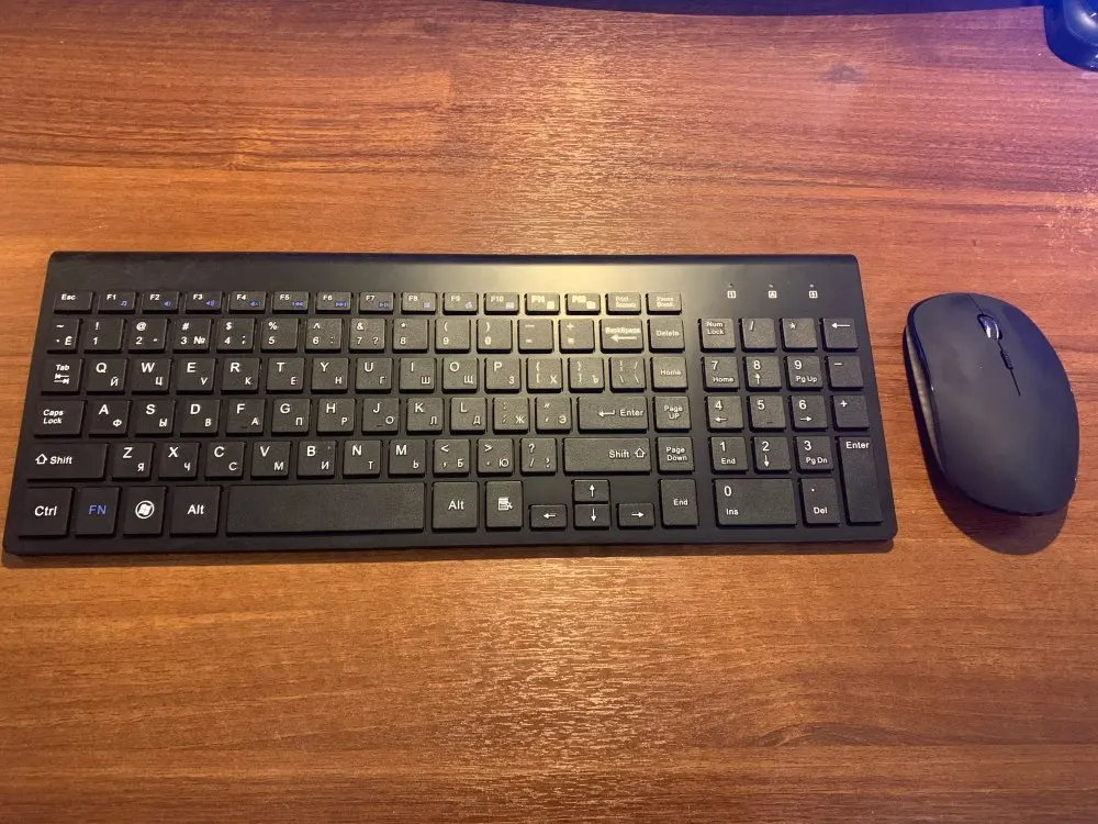 Удобная и компактная клавиатура, мягкая и тихая мышь. Снял бал за крышку мышки, очень слабая, пришлось скотчем заклеить и жуткие красные лампочки на клаве, тоже их заклеил чтоб не отвлекали.