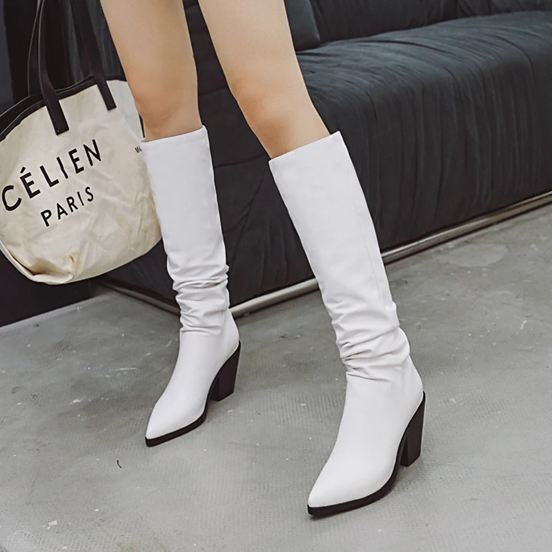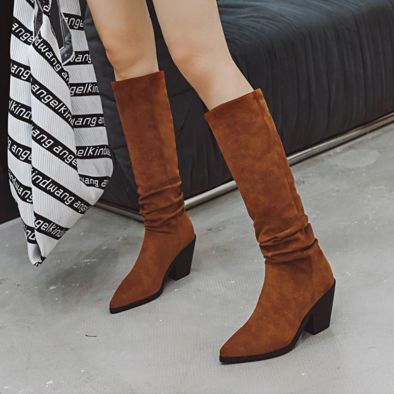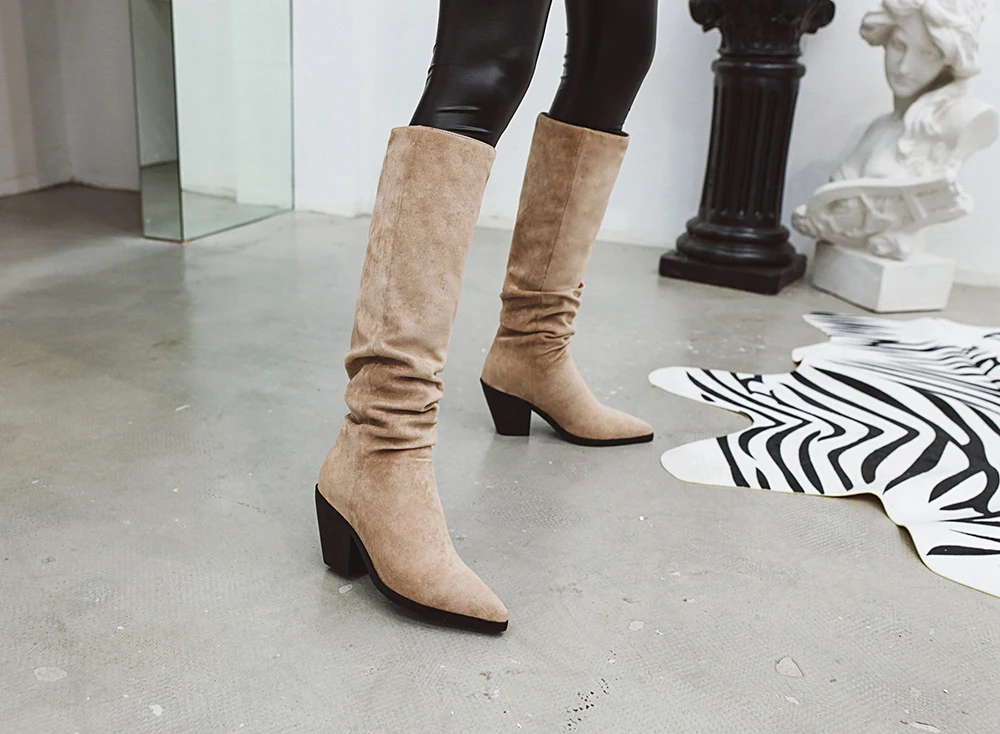 Новинка весны; Женские сапоги до середины икры со складками; Коллек...