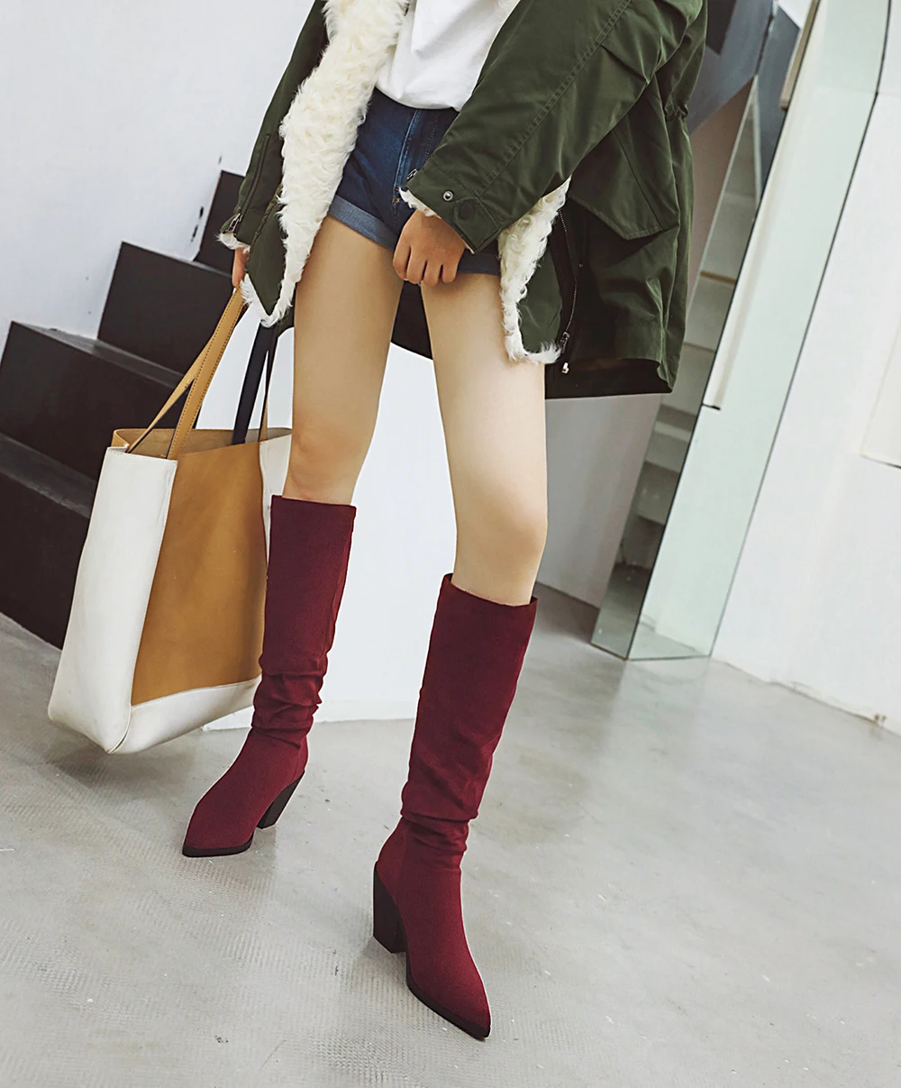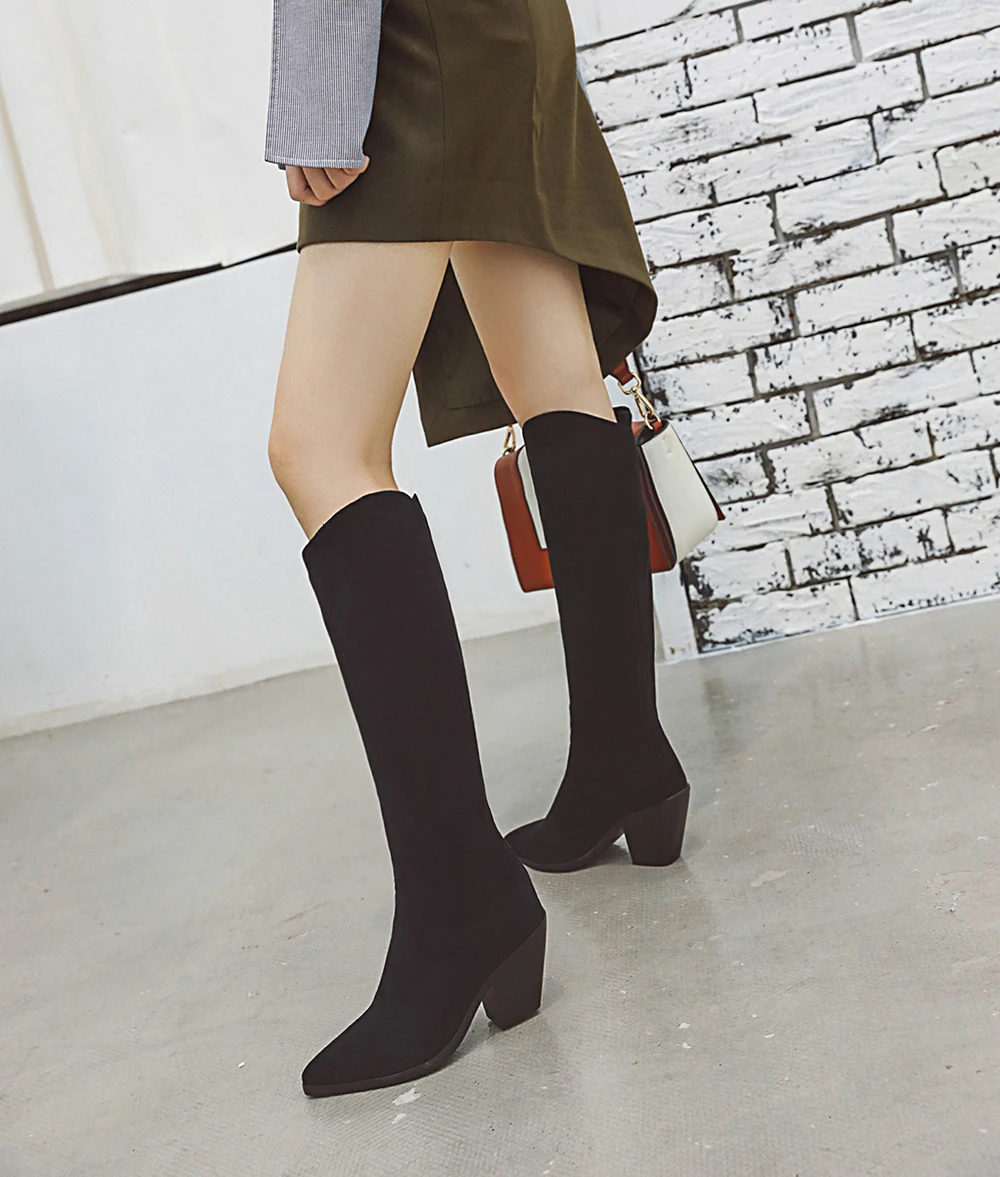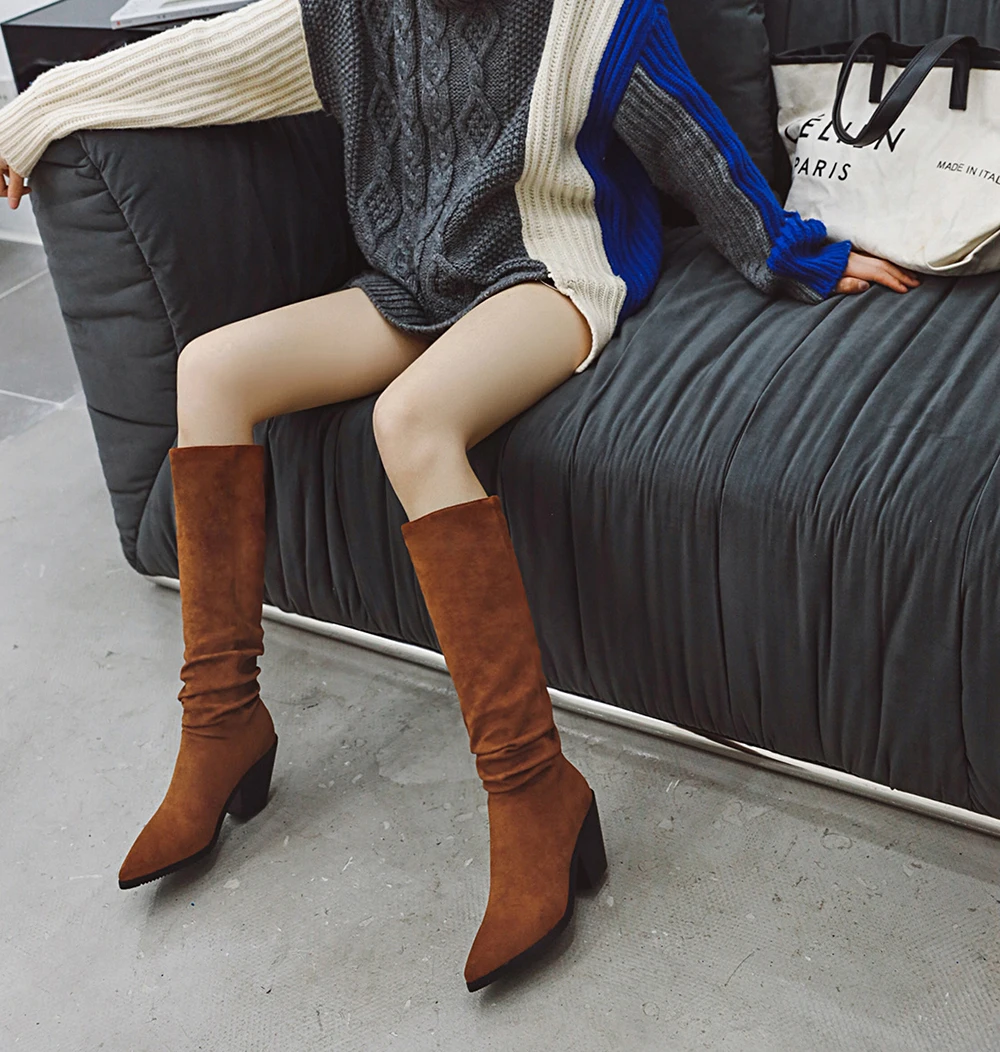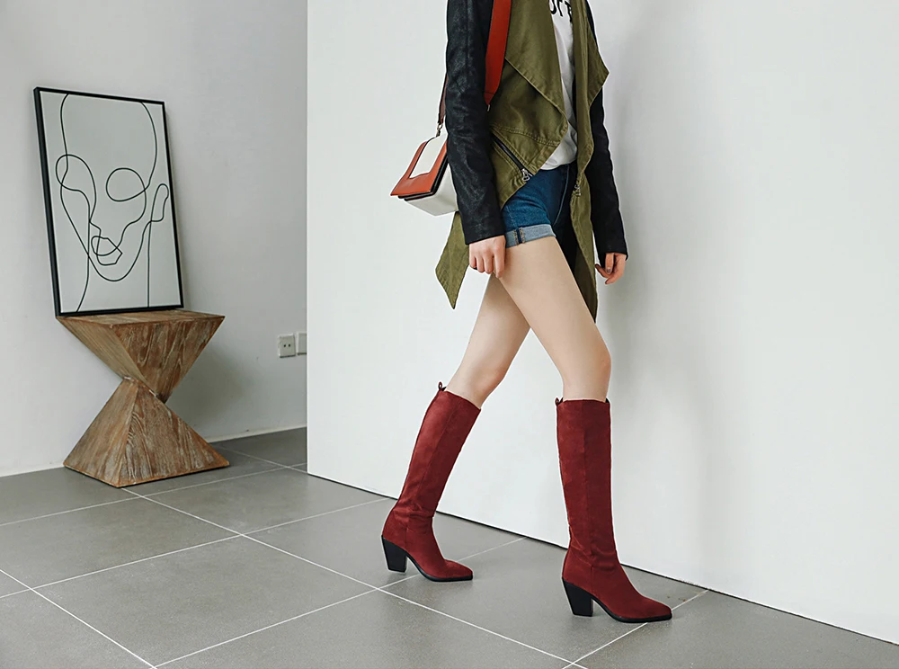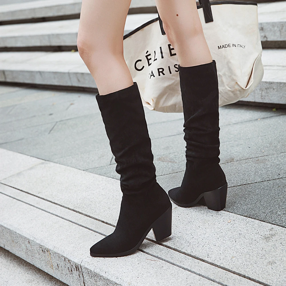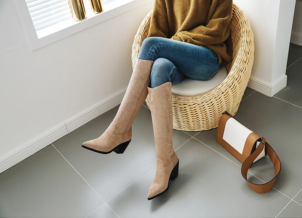 Зимние ботфорты для женщин, замшевые ботфорты, привлекательные женс...