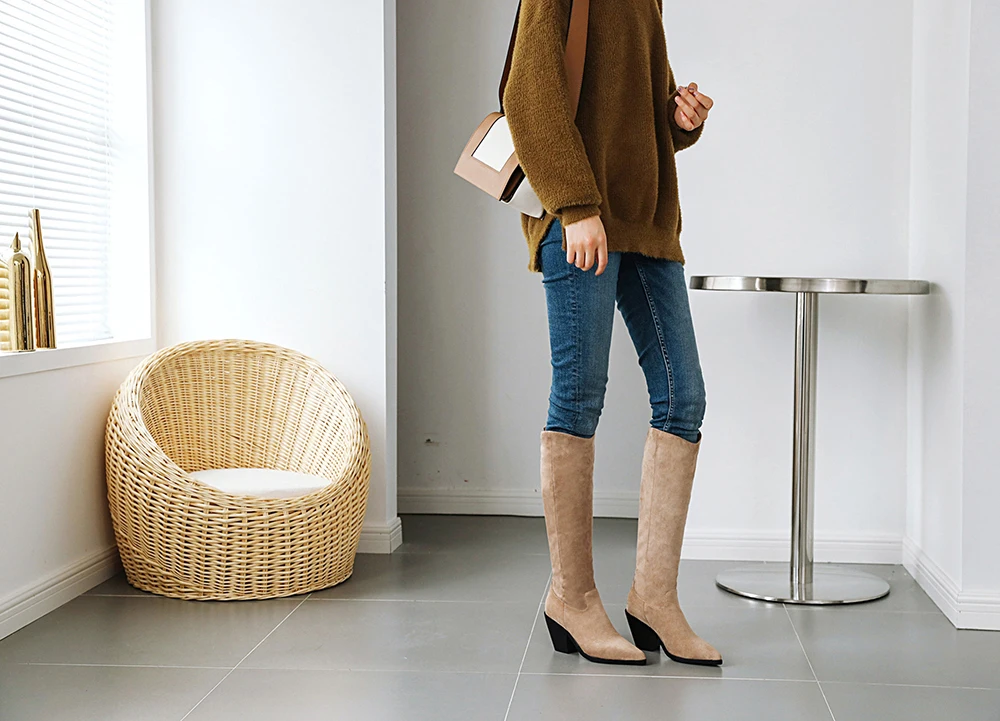 Сапоги до колена; Ковбойские сапоги для женщин; Длинные зимние сапо...