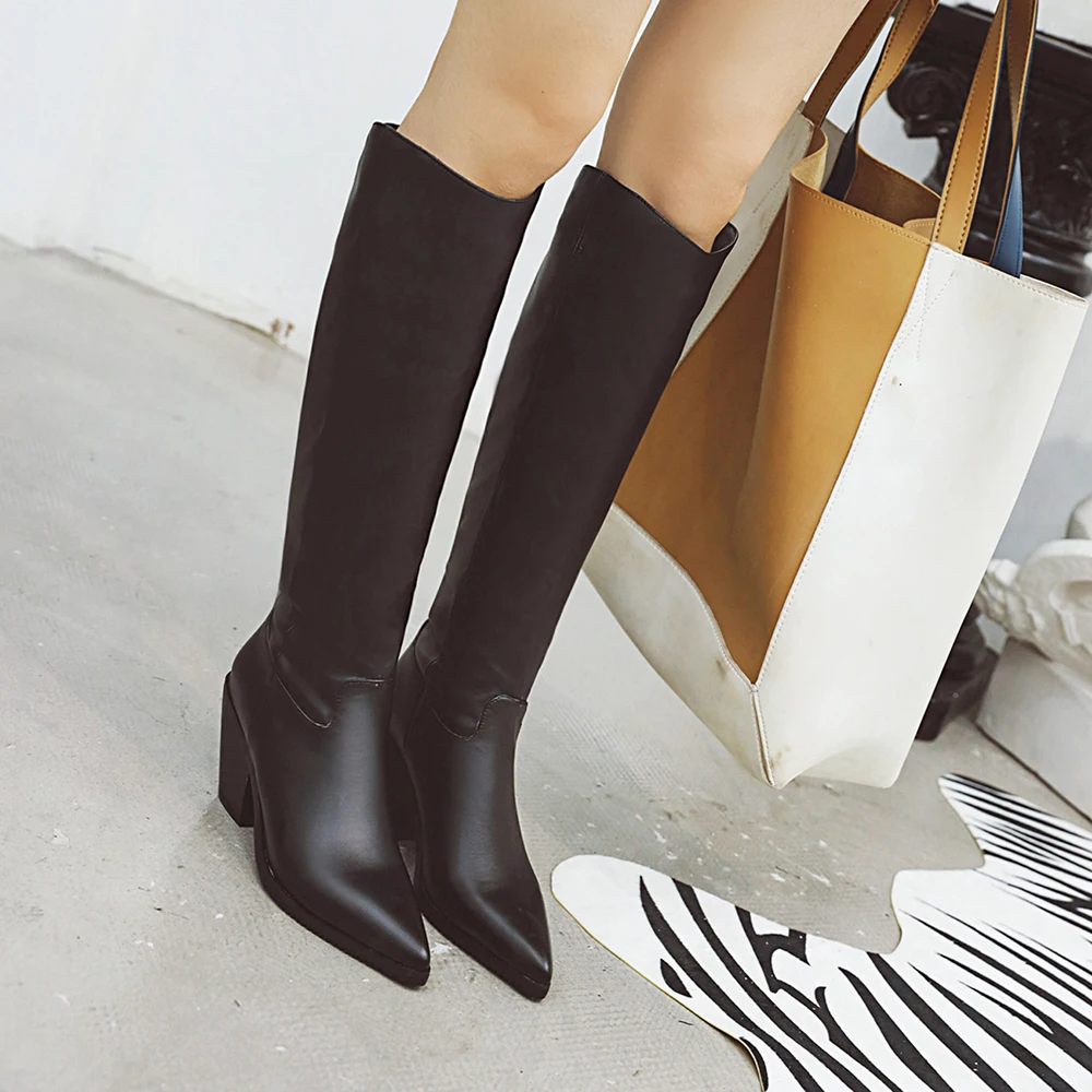 Модные женские сапоги; сапоги до колена; однотонные сапоги для верх...
