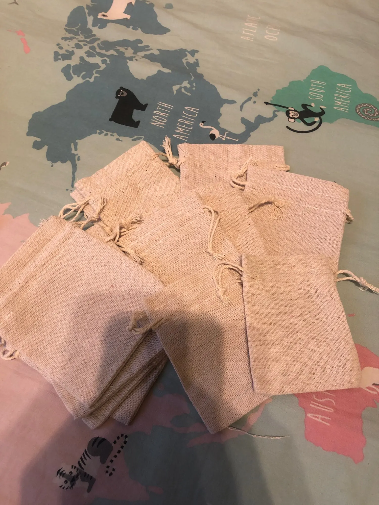 Мешочек для подарков, из льна, джута, хлопка, 10 шт. (11 размеров)