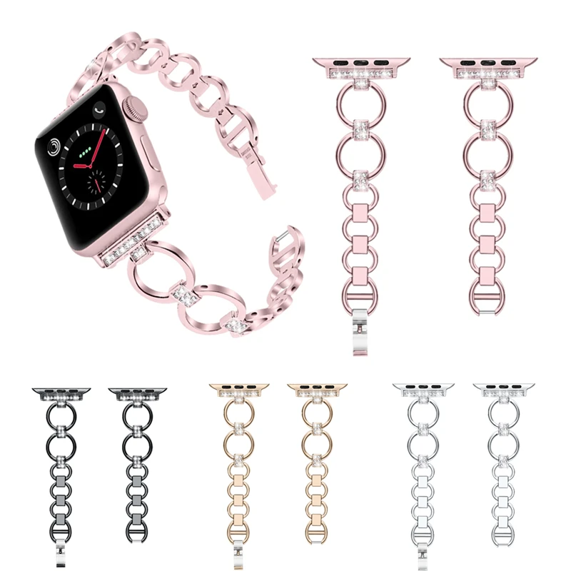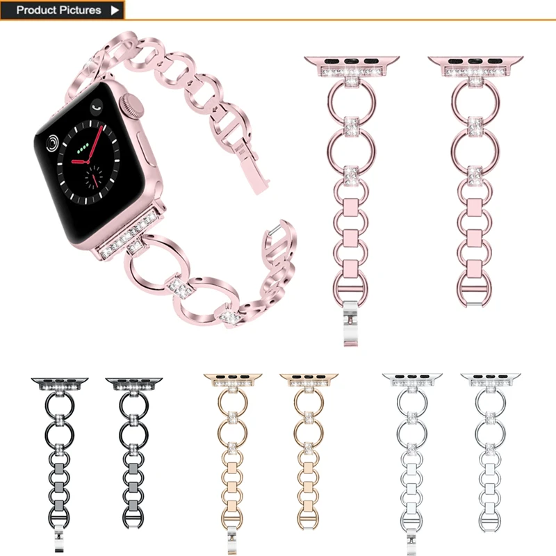 Браслет из нержавеющей стали для Apple Watch Band 6, 5, 4, 3, 2, 1, SE, с бриллиантами, 44 мм, 40 мм, 42 мм, 38 мм, ремешок для iWatch