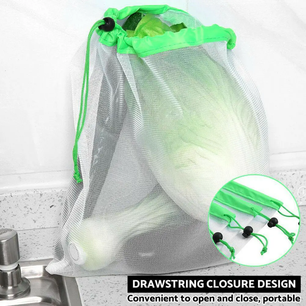 Многоразовые продуктовые мешки 1215 шт., черная сетчатая для овощей, фруктов, игрушек сумка для хранения, экологически чистые пакеты для покупок с двойной прошивкой