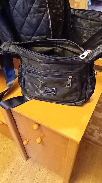 Сумка шикарная. Я очень довольна. Много кармашков, нормальные молнии. В сумке в основное отделение лёг термос 0,4л, бутылка воды 0,5л, банан, ежедневник А5, книжка А5, ручки, флешки, кошелёк и другие мелочи. Наружный карман под клапаном тоже имеет объем - авоська, салфетки/платочки и тд. В боковом кармашке на резинке себя отлично чувствует зонт, прихваченный карабинчиком к ремешку. Ремень - шелковистая стропа, очень хорошей длины. Сумку через плечо носить удобно, есть запас по ремню. Вместительная и лёгкая сумка. Цвет очень красивый! Отправка быстрая, доставка пару недель. Рекомендую.