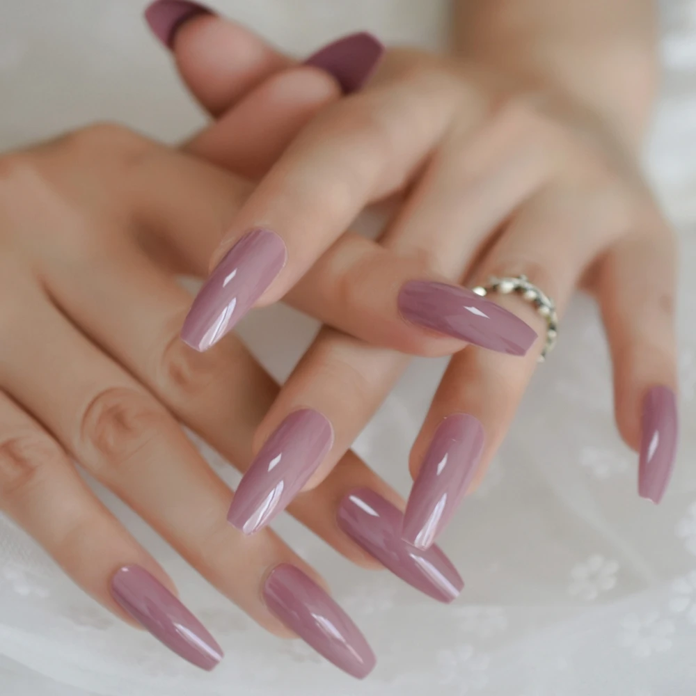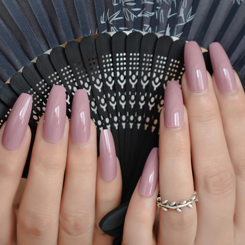 Темно-розовые длинные балерины, накладные ногти, супер глянцевый УФ-гель, чехол для полировки гроба, украшения ногтей, накладные ногти