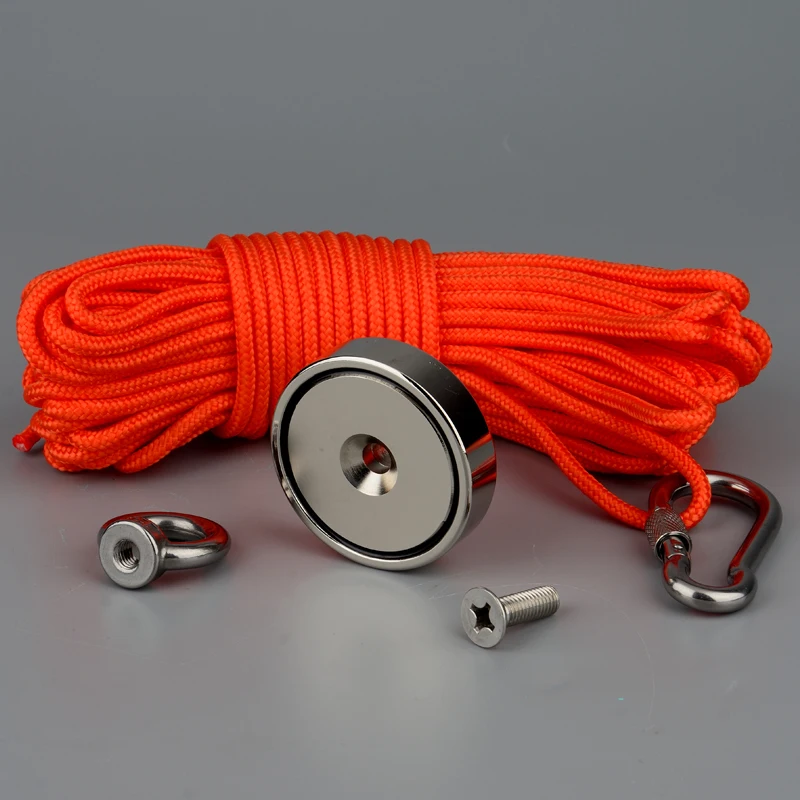 200 кг сильный Неодимовый Постоянный магнит N52, Круглый Мощный рыболовный магнит с 15 м веревкой и коробкой, магнитное основание из материала