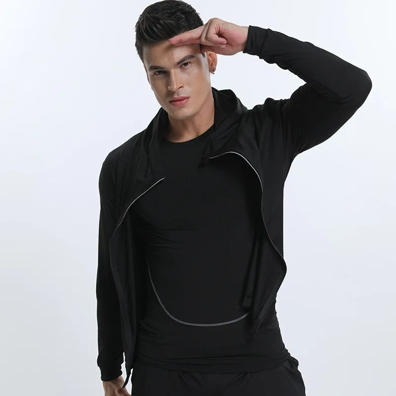 Куртка мужская Спортивная на молнии для бега, кофта с капюшоном для фитнеса и тренировок, спортивная одежда, осень-зима 2019