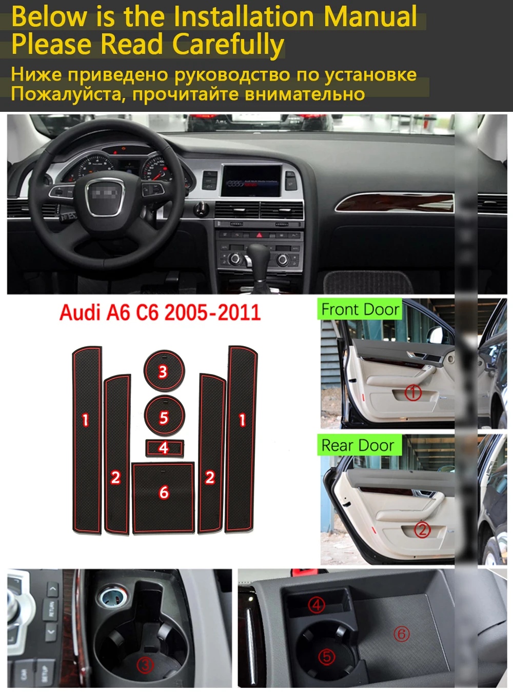 Противоскользящий резиновый коврик для чашки, для Audi A6 C6 4F RS6 S6 S line RS 6 2005 2011 2007 2010, аксессуары, коврик для телефона