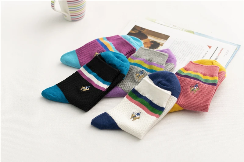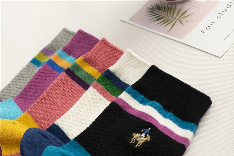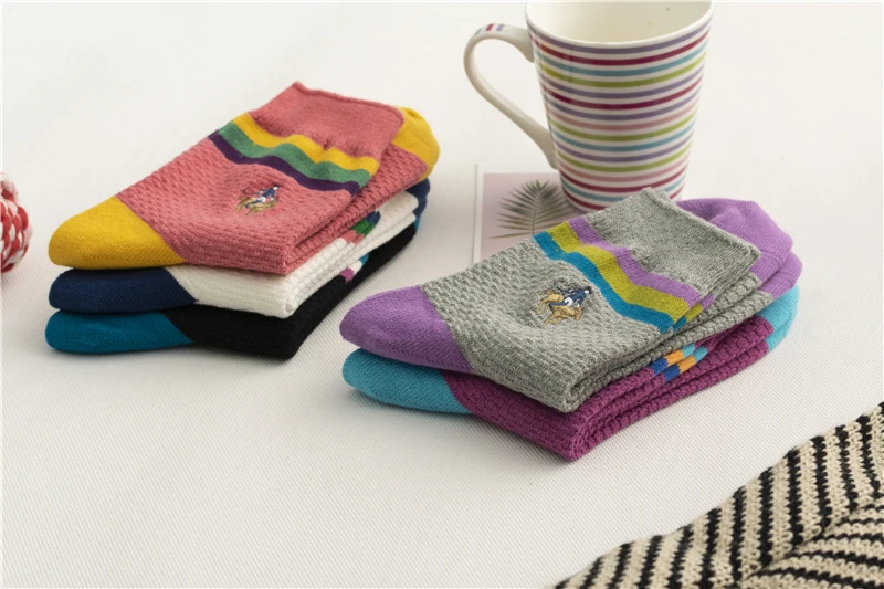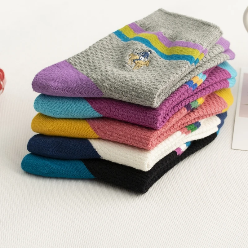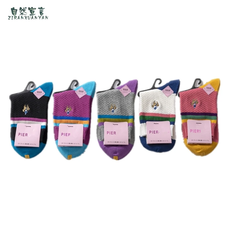 Новый стиль женских полосок на осень и зиму 2022, носки из чистого хлопка с вышивкой, женские носки для отдыха
