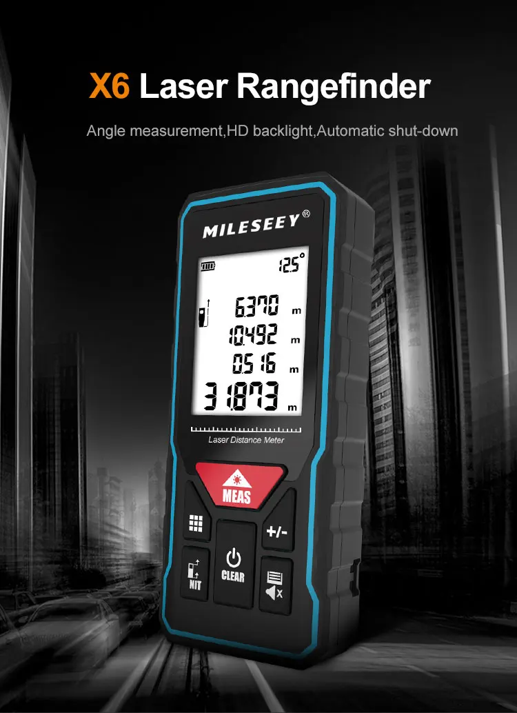 Ручной цифровой дальномер Mileseey X6, лазерный измеритель расстояния с углом, для дома
