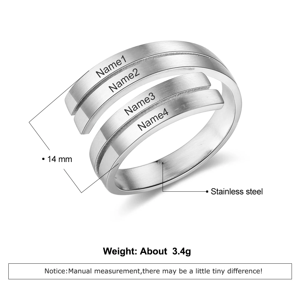Персонализированное кольцо, классическое регулируемое ювелирное изделие из нержавеющей стали, гравировка, 4 имени, элегантное кольцо на заказ, простой свадебный подарок для женщин