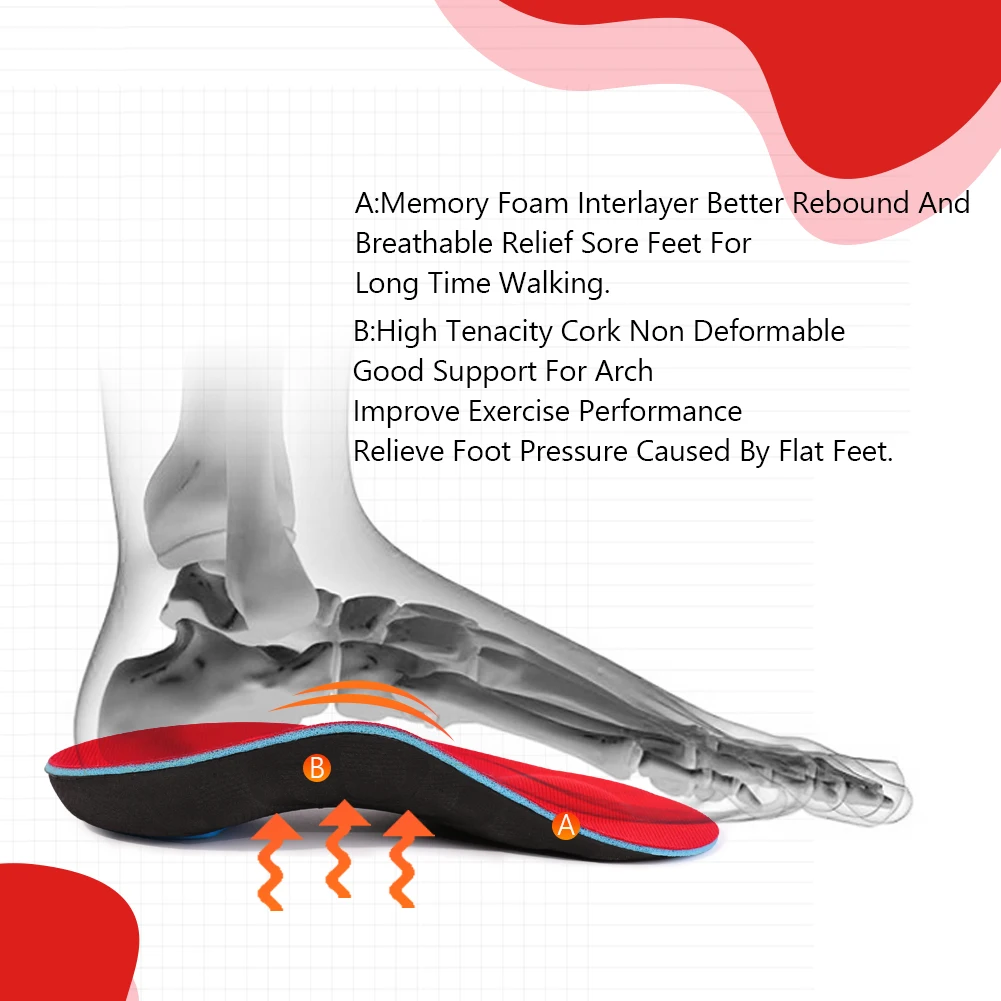 ※ [Материал высокого качества] A: использование бархатной ткани, нескользящая, дышащая и поглощающая пот, сохраняет ногу сухой весь день B: Натуральная пробка для поддержки свода стопы, основанная на человеческой механике, обеспечивают хорошую поддержку свода стопы и снимают давление, вызванное проблемами со сводом стопы. C: прочная конструкция из вспененного этиленвинилацетата, нескользящая, износостойкая. Устойчиво лежит в обуви. D: прослойка из пены с эффектом памяти улучшает дышащий отскок при длительной ходьбе.