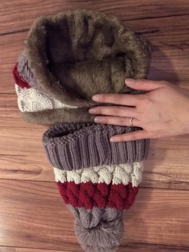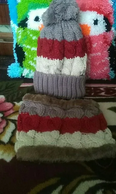 шапка супер, очень хорошее качество,внутри тёплая подкладка,шарф замечательный, очень довольна покупкой,надо посмотреть другие расцветки