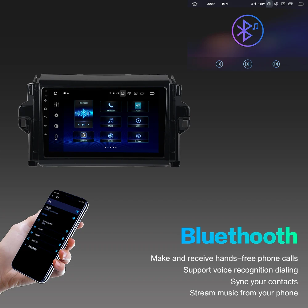 С функцией распознавания голоса и функцией телефонной книги. Вы можете синхронизировать номер телефона с мобильного телефона с этим устройством и сделать управление мобильным телефоном без рук удобно и быстро. Вы можете передавать музыку с телефона через Bluetooth и наслаждаться миллионами любимых композиций