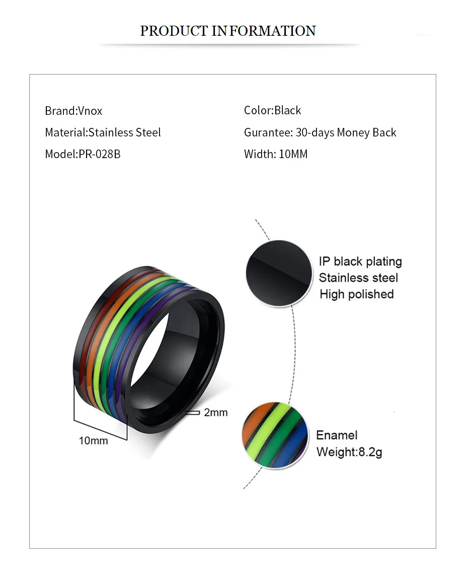 Мужское кольцо Vnox из нержавеющей стали, эмалированная Радуга, украшения для геев, лесбиянок