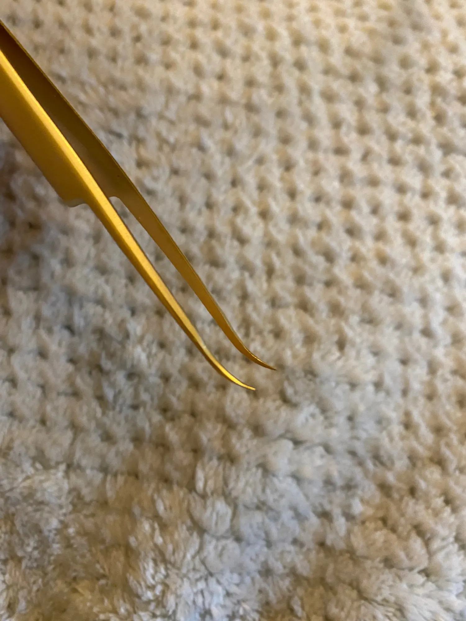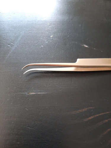 buenas pinzas para precisión de colocación de pestañas volumen. puntita chica y muy fina, tarde en acostumbrarme pero es excelente para el volumen