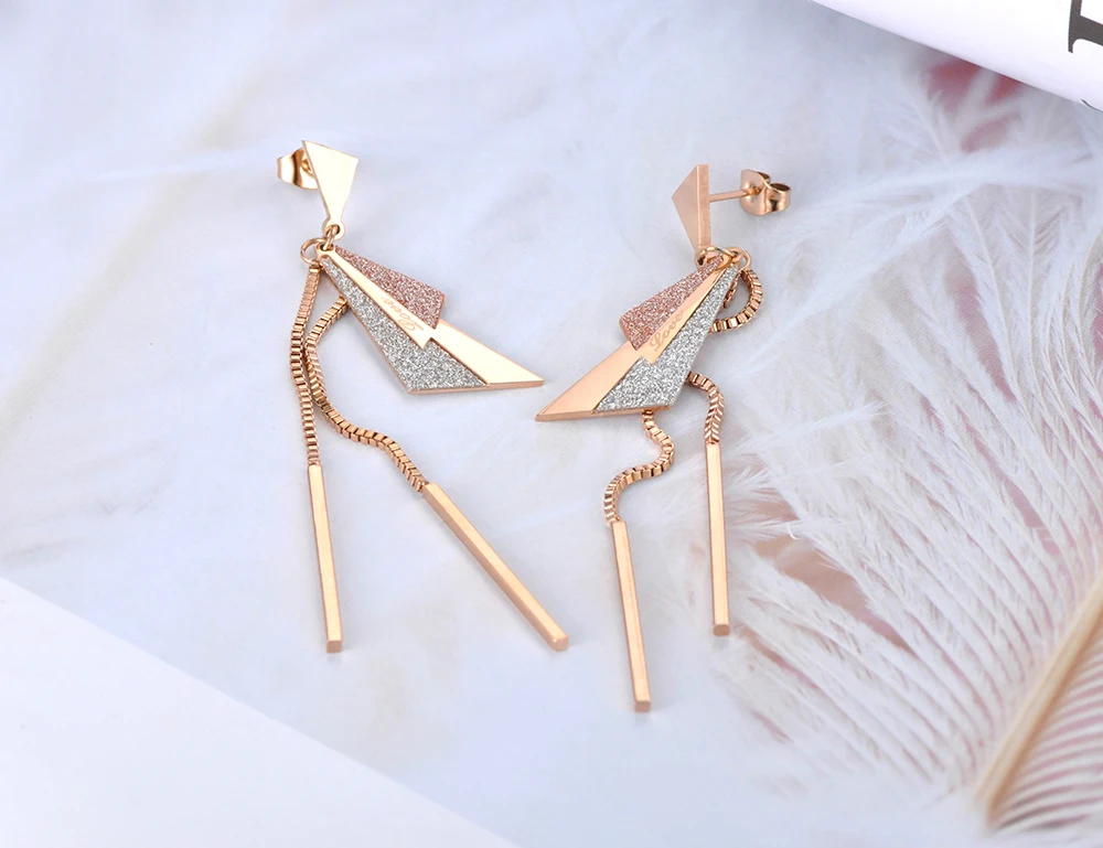 Женские Геометрические серьги Lokaer, из титановой стали, с треугольными кисточками, в богемном стиле, с цепочкой, E19193